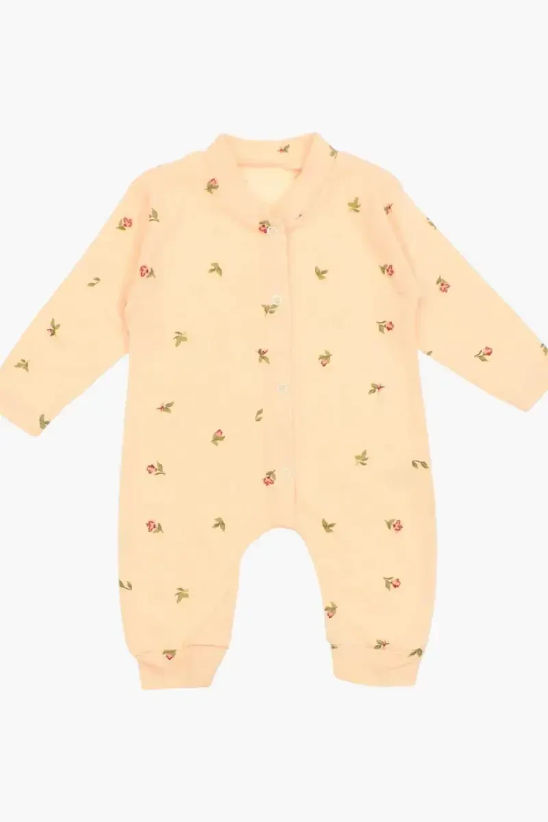 Baby Girl Tulip Print Snap-Button Newborn Baby Jumpsuit 100% Cotton Flexible 1-3-6 Months-SALMON TULIP, a unique piece that has been carefully crafted for your little princess's delicate skin, offering both comfort and elegance. This adorable jumpsuit provides the comfort and practicality your baby will need in the first months, while dazzling with its elegant tulip print.**Product Description**This snap-button jumpsuit, specially designed for baby girls, is made of 100% cotton. The natural structure of cotton allows your baby's skin to breathe, preventing perspiration and providing all-day comfort. Thanks to its flexible fabric, it does not restrict your baby's movements, allowing them to move freely while playing or sleeping. The cute tulip print on the front of the jumpsuit adds elegance and joy to your baby's wardrobe. The salmon color provides a soft touch to your baby's skin and matches every combination. Thanks to its snap-button design, it is extremely easy to put on and take off the jumpsuit. It provides great convenience, especially during diaper changes. The snap fasteners of the jumpsuit are made of anti-allergenic material that does not harm your baby's sensitive skin. In this way, the risk of any irritation or allergic reaction on your baby's skin is minimized. The Baby Girl Tulip Print Snap-Button Newborn Baby Jumpsuit not only offers a stylish look, but is also designed with your baby's health and comfort in mind. Suitable for 1-3-6 month old babies, this jumpsuit adapts to your baby's growth process and offers long-term use. It is an ideal choice for both daily use and special occasions in your baby's first months. When the fabric of the product is washed in accordance with the washing instructions, it preserves its color and form for a long time. Thus, your baby's jumpsuit always looks new and vibrant. The Baby Girl Tulip Print Snap-Button Newborn Baby Jumpsuit will be an indispensable part of your baby's wardrobe and will give you and your baby pleasant moments. This jumpsuit, which will be the right choice for your baby's comfort and elegance, is also a meaningful and useful gift option that you can give to your loved ones.**Product Features*** 100% Cotton* Flexible Fabric* Snap-Button Design* Tulip Print* Salmon Color* Suitable for 1-3-6 Month Old Babies* Anti-Allergenic Snap Fasteners* Breathable Fabric* Easy to Put On and Take Off* Ideal for Daily and Special Occasions* Skin Friendly* Provides Freedom of Movement* High Quality Material* Stylish and Elegant Appearance* Long-Lasting Use**Additional Information**Follow the washing instructions to ensure the product lasts longer. Do not use bleach. Iron at low temperature.