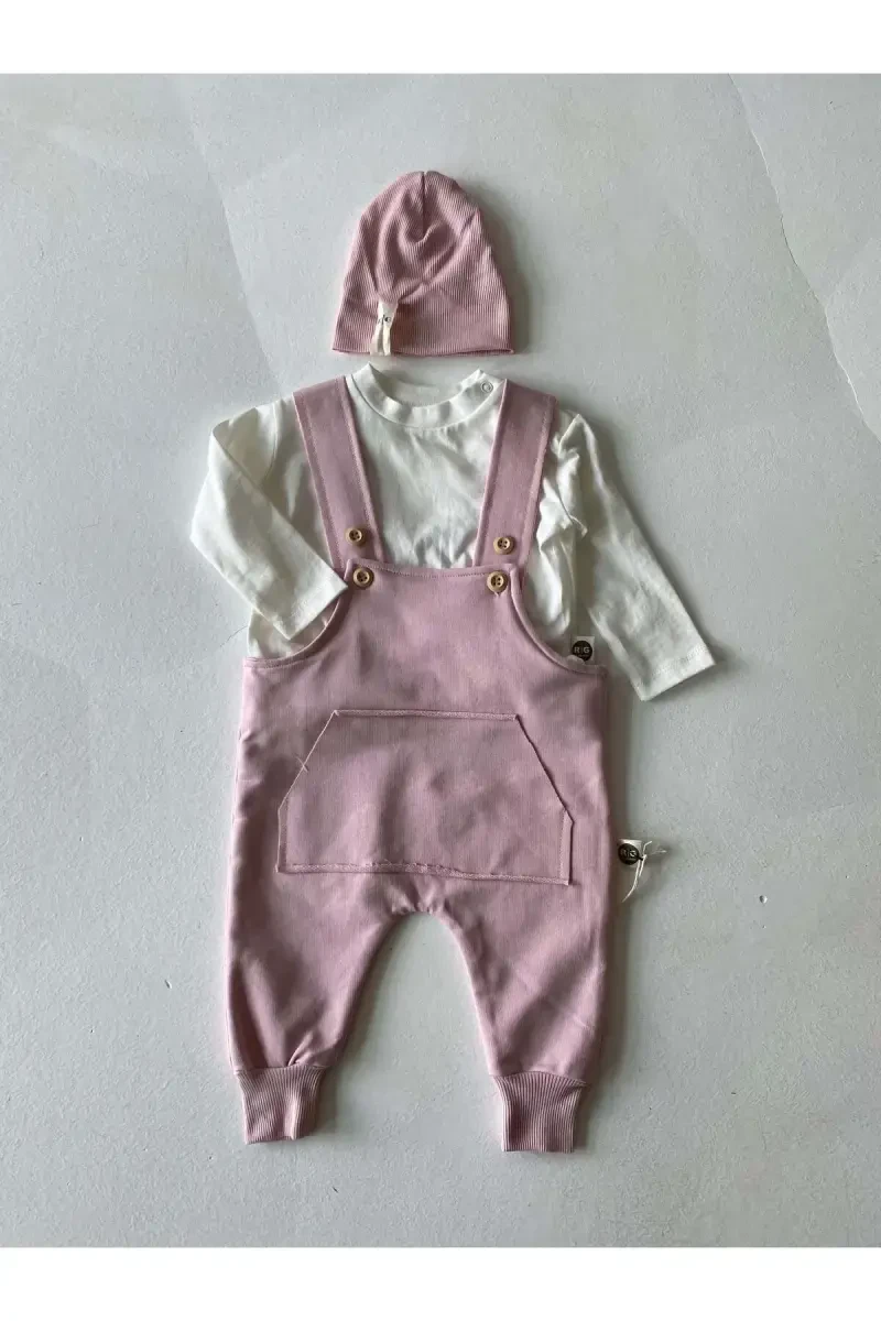 Dear parents, meet the Baby Kangaroo Pocket Jumpsuit and Hat Set, offering the softest and most comfortable experience for your little ones! This special set is designed to keep your baby warm, comfortable, and stylish at all times. Produced with RG brand quality, this amazing set gently touches your baby's delicate skin thanks to its woven fabric structure and offers comfort that lasts all day. The short-length design allows your baby to play comfortably, explore, and discover the world without restricting their freedom of movement. Its specially designed pattern perfectly fits your baby's body shape, providing a comfortable wearing experience all day long. It's not just a jumpsuit; the set, completed with an adorable hat, also keeps your baby's head warm and protected. It keeps your baby warm on cold winter days or cool evenings, allowing parents to take their baby outside with peace of mind. Plus, you can buy with confidence thanks to our 15-day free return option. Choose the best for your little one and get this unique set now!