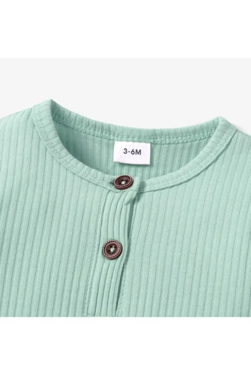 Baby Onesie Long Sleeve Ribbed Buttoned 100% Cotton - Comfortable and Stylish