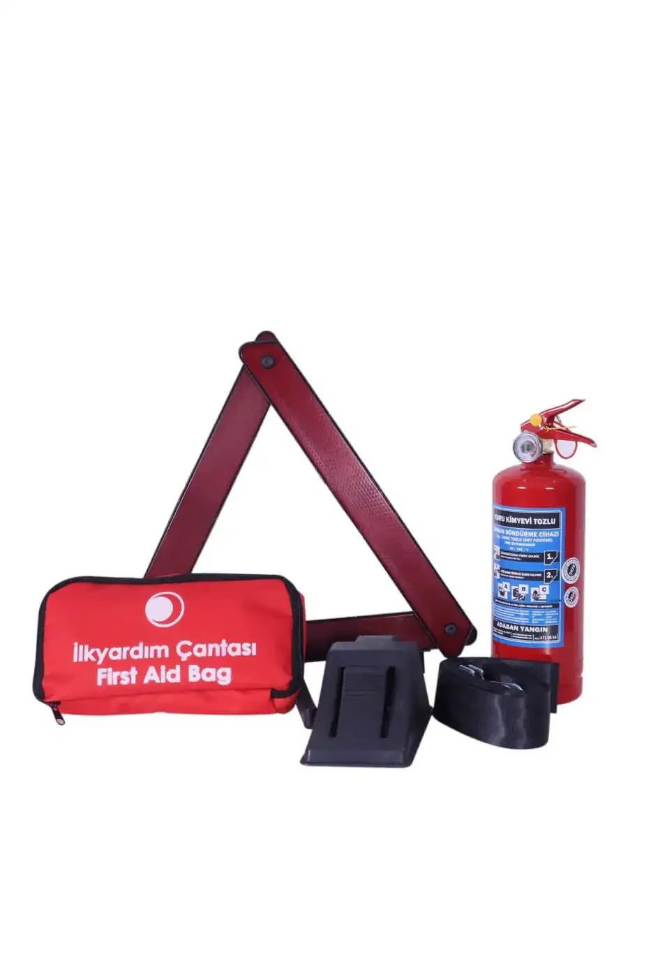 Traffic Set with Bag - Luxury TÜVTÜRK Compliant + Bag A is a complete solution designed for your vehicle's safety and any emergency situation you may encounter on the road. This comprehensive set not only meets legal requirements but also offers you and your loved ones a peaceful travel experience. This set, which allows you to pass the TÜVTÜRK inspection smoothly, guarantees that you are always prepared with the high-quality equipment it contains.The heart of the set consists of carefully selected materials manufactured in accordance with international standards. The first aid kit is of vital importance, offering immediate intervention in case of accidents or minor injuries that may be encountered on the road. The tow rope ensures that your vehicle is safely towed in case of malfunction, preventing you from being stranded. Chocks increase safety by preventing your vehicle from sliding while parked. The high-performance flashlight provides clear visibility at night or in dark environments, ensuring your safety. Reflectors increase the visibility of your vehicle, making it easier for other drivers to notice you and preventing accidents. Durable gloves protect your hands during repairs or other emergencies. The fire extinguisher allows you to quickly and effectively intervene in vehicle fires, preventing major damage.The Traffic Set with Bag - Luxury stands out not only for its functionality but also for its ease of use. All parts of the set are neatly stored in a durable and waterproof bag. This allows you to easily access the equipment you need and safely carry the set in your vehicle. The compact design of the bag ensures that it does not take up too much space in your vehicle.This set is not just a safety measure, but also an investment. It increases the value of your vehicle and serves you for many years. When you hit the road with the Traffic Set with Bag - Luxury TÜVTÜRK Compliant + Bag A, you will have peace of mind and know that you are prepared for any situation. Remember, safety always comes first. This set is the best solution for the safety of you and your loved ones.Made of high-quality materials, this set is long-lasting and resistant to harsh weather conditions. Each part has been rigorously tested and approved. This ensures that you always have a set you can rely on. The Traffic Set with Bag - Luxury TÜVTÜRK Compliant + Bag A is not just a product, but also a guarantee. It offers you and your loved ones a safe travel experience.