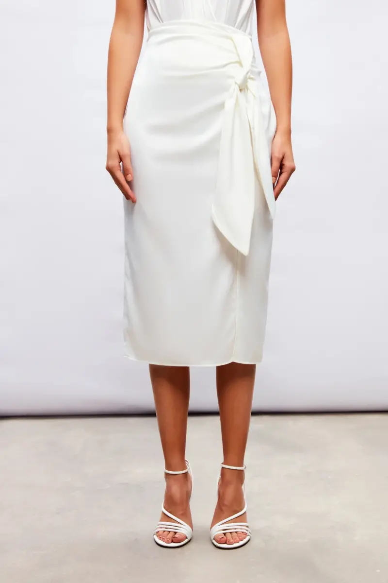 Zarif ve şık bir görünüm için mükemmel bir tercih olan Bağlamalı Saten Etek, gardırobunuzun vazgeçilmez parçalarından biri olacak. Yumuşak ve akıcı saten kumaştan üretilen etek, her adımda rahatlık ve zarafet sunar.