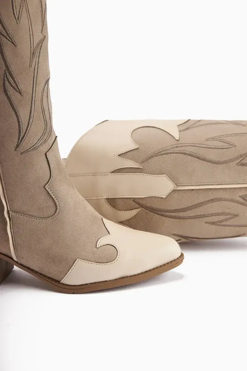 Bahor Bej Süet Tikilgan Teri Detaylı Topqali Vestern Etiklar uslub, qulaylik va stilni birlashtirishni istagan ayollar uchun mukammal tanlovdir.