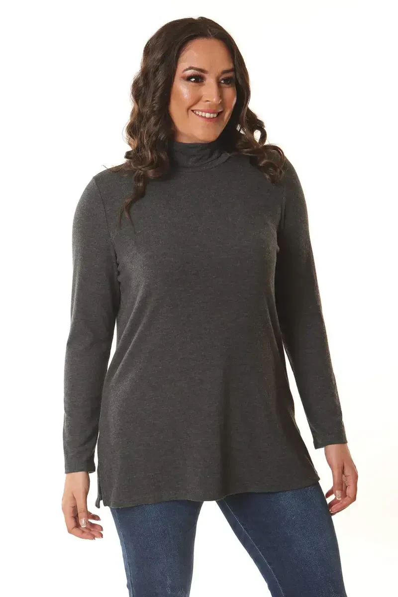 Вязаный свитер с воротником-стойкой антрацитового цвета: стильная и удобная верхняя одежда