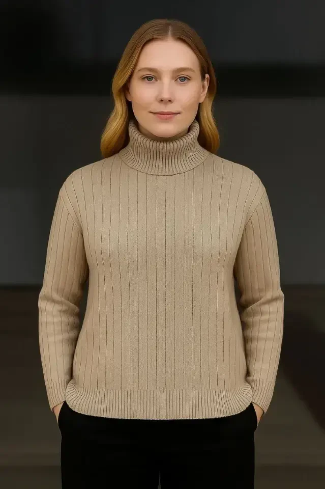 Balıkçı yaka bağazlı triko kazağımız, bej rengiyle gardırobunuzun vazgeçilmez parçası olmaya aday! Pamuklu ve kalın fitilli dokuması sayesinde hem şık bir görünüm sunar hem de sizi sıcacık tutar. Soğuk havalarda stilinizden ödün vermeden konforu yaşamak isteyenler için ideal bir seçimdir. Balıkçı yaka detayı, kazağa modern ve sofistike bir hava katarken, bağazlı oluşu boynunuzu rüzgardan koruyarak ekstra sıcaklık sağlar. Günlük kullanımın yanı sıra, özel günlerinizde de rahatlıkla tercih edebileceğiniz bu kazak, farklı kombinlerle kolayca uyum sağlayabilir. Jean pantolonlarla spor bir tarz yaratabilir, eteklerle daha şık bir görünüm elde edebilirsiniz. Aksesuar seçiminizle de kazağın tarzını dilediğiniz gibi kişiselleştirebilirsiniz. Kaliteli pamuklu dokusu sayesinde uzun ömürlü kullanım sunar ve kolayca yıkanabilir. Bej renginin zamansızlığı, kazağı her sezon giyilebilir kılar. İster tek başına, ister ceket veya kaban içinde kullanın, her durumda şıklığınızı koruyacaksınız. Modelin üzerindeki M/38 beden, ürünün rahat ve salaş bir kesime sahip olduğunu gösterir. Kendi bedeninizi tercih ederek üzerinizde mükemmel duruşunu yakalayabilirsiniz. Bu kazak, hem rahatlığına hem de şıklığına önem veren kadınlar için tasarlanmıştır. Gardırobunuzda mutlaka bulunması gereken, çok yönlü ve stil sahibi bir parçadır. Günlük koşturmacanızda, arkadaşlarınızla buluşurken veya özel bir akşam yemeğinde, her zaman şık ve rahat hissetmenizi sağlar. Balıkçı yaka bağazlı triko kazak, bej rengiyle sadece bir kazak değil, aynı zamanda bir stil ifadesidir. Kendinizi özel hissetmek ve tarzınızı yansıtmak için harika bir seçimdir. Soğuk kış günlerinde sıcacık kalırken, şıklığınızdan da ödün vermek istemiyorsanız bu kazak tam size göre!