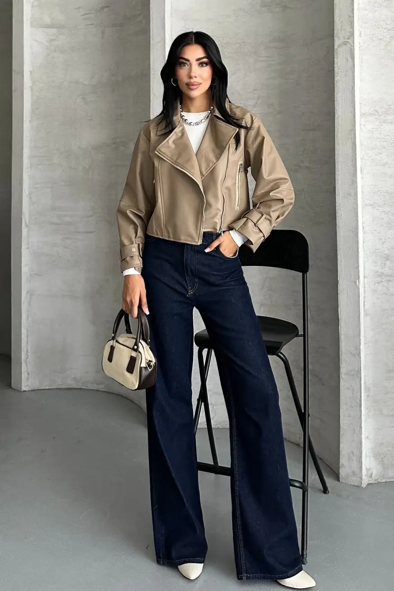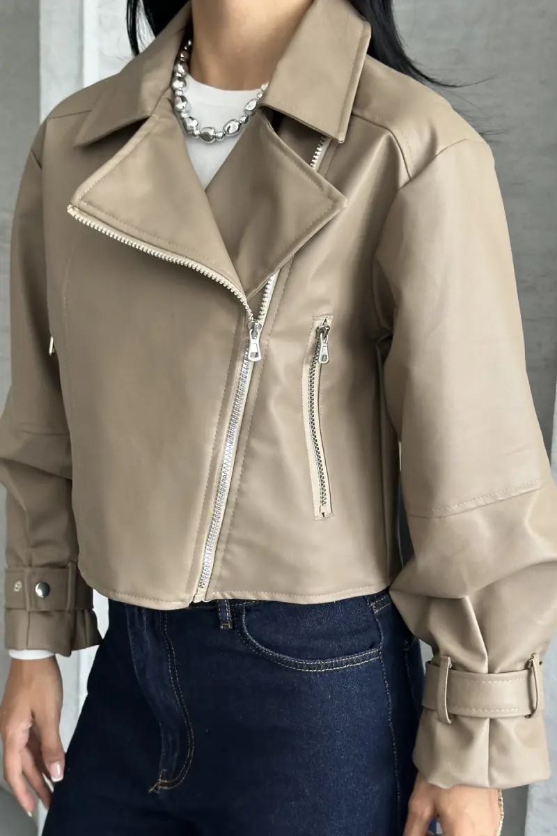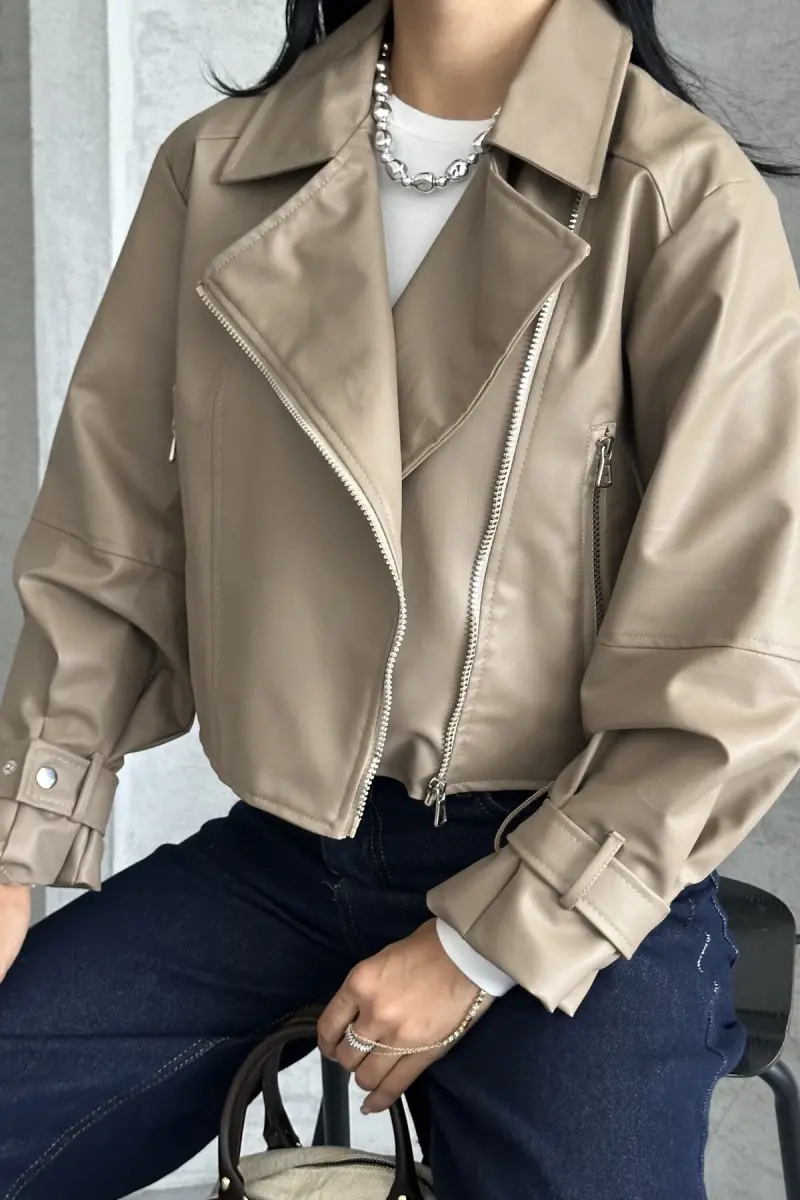 Balon Kol Deri Ceket-Bej