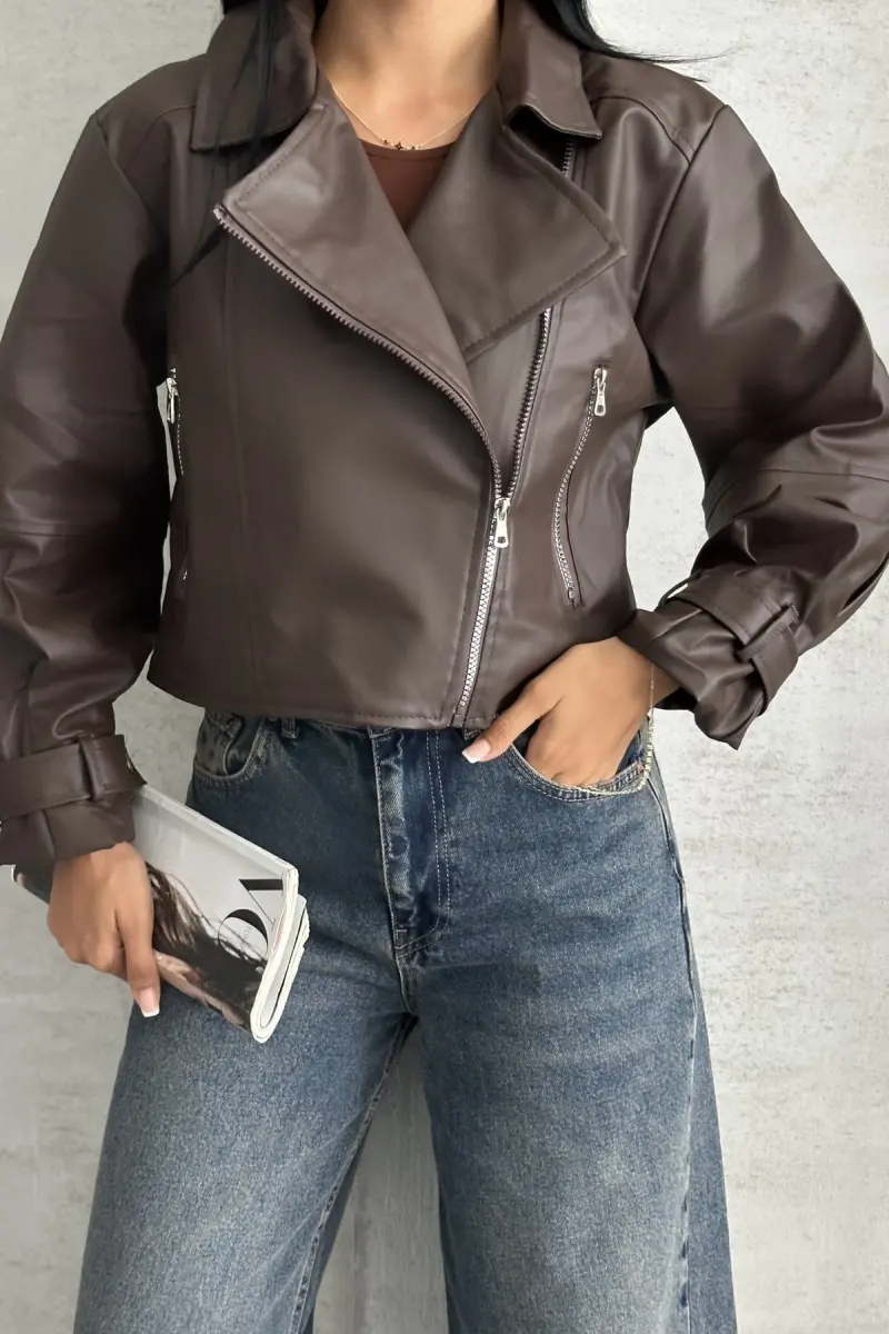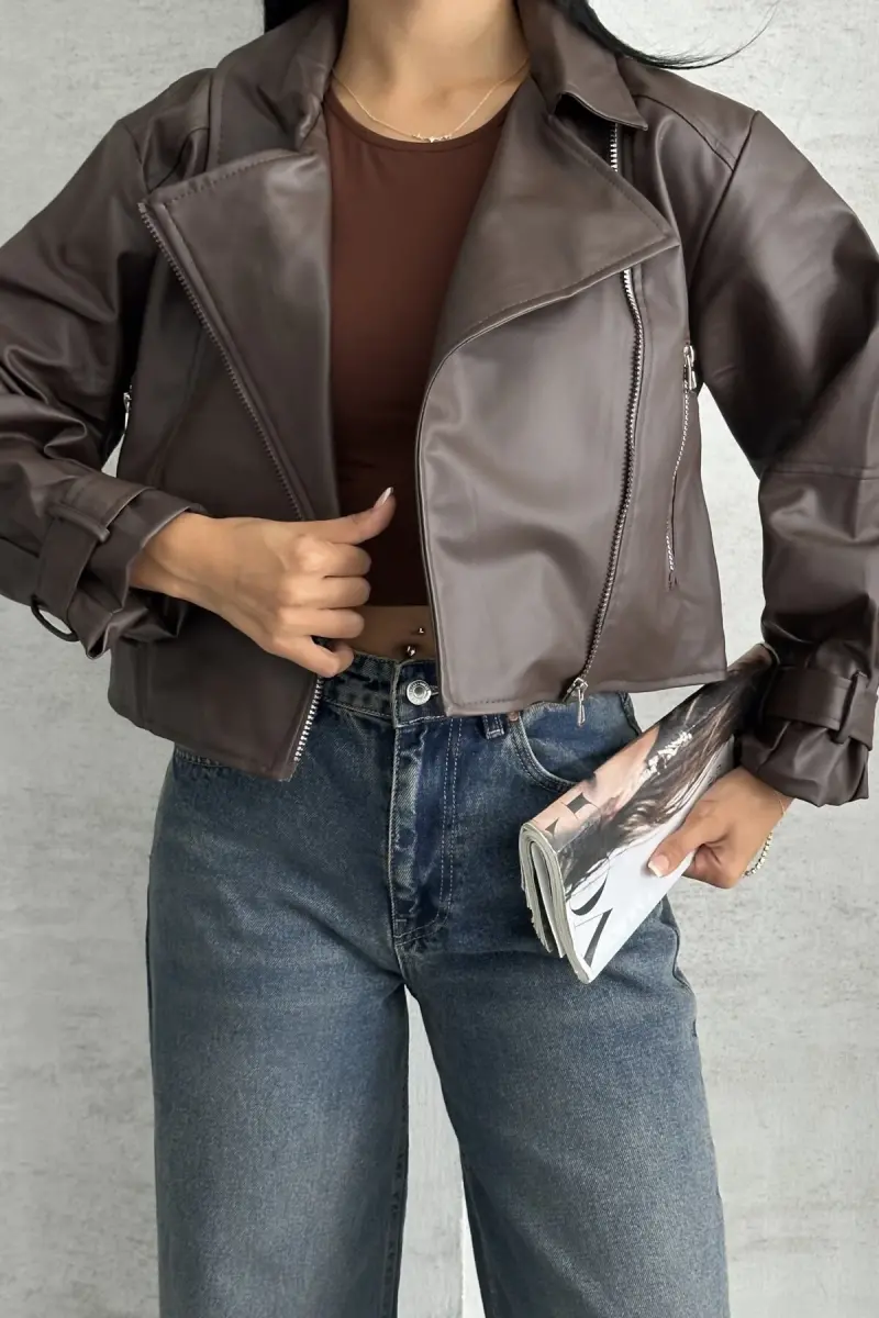 Balon Kol Deri Ceket-Kahverengi