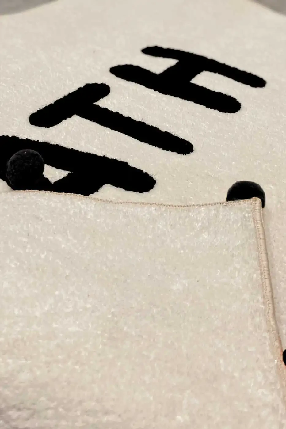 Banyonuzun şıklığına ve konforuna yeni bir boyut kazandıracak Bath Siyah Ponpon Detaylı Yazılı Banyo Paspası ile tanışın! 90x57 cm ölçüleriyle geniş ve ferah bir kullanım alanı sunan bu paspas, %100 organik pamuktan üretilmiş özel şönil dokuma yapısıyla benzersiz bir yumuşaklık ve konfor deneyimi yaşatıyor. Ayağınıza değdiğinde hissedeceğiniz muhteşem yumuşaklık, banyonuzdan çıkmak istememenize neden olacak! Siyah zemin üzerine zarifçe işlenmiş "BATH" yazısı, banyonuza sofistike bir hava katarken, canlı ve sevimli ponpon detayları da şıklığa hareketlilik ve enerji katıyor. Üstelik, "BATH" yazısı baskı değil, özenle dokunmuş bir detay olduğu için solma veya ağarma yapmaz, uzun yıllar boyunca ilk günkü güzelliğini koruyacaktır. 10 mm kalınlığıyla da mükemmel bir yastıklama sağlayan paspas, zemin soğukluğunu engeller ve çıplak ayaklarınızın her an rahat etmesini sağlar. Bu özel tasarım paspas, sadece bir banyo aksesuarı değil, banyonuzu kişiselleştirecek ve tarzınızı yansıtacak şık bir dekorasyon parçasıdır. Şimdi sipariş verin ve banyonuzdaki farkı hemen görün!
