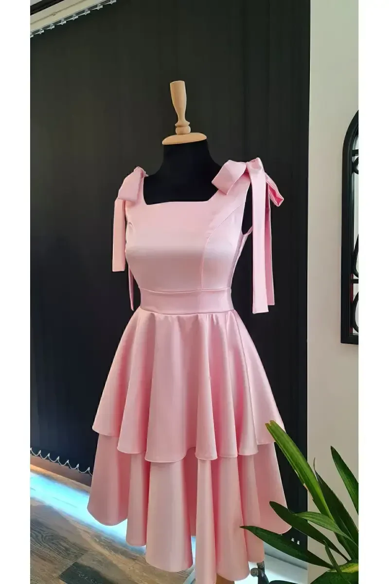 Get ready to dazzle on your special occasions with the Barbie Pink Satin Mini Square Neck Birthday Graduation Dress! This magnificent dress combines elegance and style, making you stand out in any setting. While its plain pattern represents simplicity, its smooth and shiny satin fabric will caress your skin. The square neck detail adds a modern and trendy touch to the dress, while the mini length offers a young and dynamic look.From graduation balls to birthday parties, special invitations to celebrations, you can easily choose this dress for all kinds of events, appealing to all age groups. Thanks to its regular fit and flared silhouette, you can maintain a stylish and elegant posture without restricting your freedom of movement. The satin weave ensures you stay comfortable throughout the day, while also giving the dress a luxurious look.The Barbie pink color adds vibrancy and energy to the dress, helping you create an eye-catching style. You can be sure that you will feel special and beautiful in this dress. This dress, carefully designed by MODAMAKKO, is produced in accordance with high quality standards. Don't miss this stylish dress that will be an indispensable part of your wardrobe!