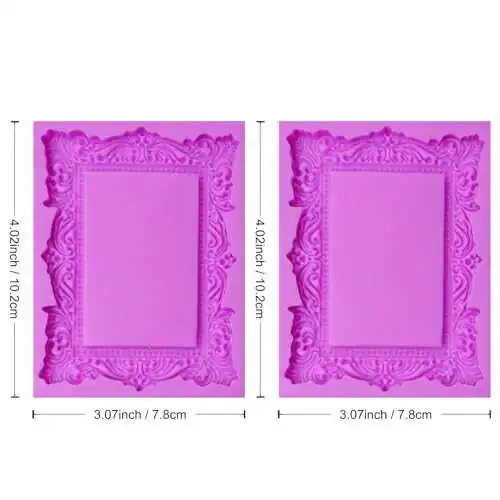 Baroque Photo Frame Fondant Molds are designed to add a touch of elegance to your desserts, creating a three-dimensional frame effect. These molds can be used with chocolate, fondant, gum paste, cookies, resin, clay, and more. The set includes two molds, allowing you to unleash your creativity and create all kinds of custom-designed cakes, candies, and gifts.