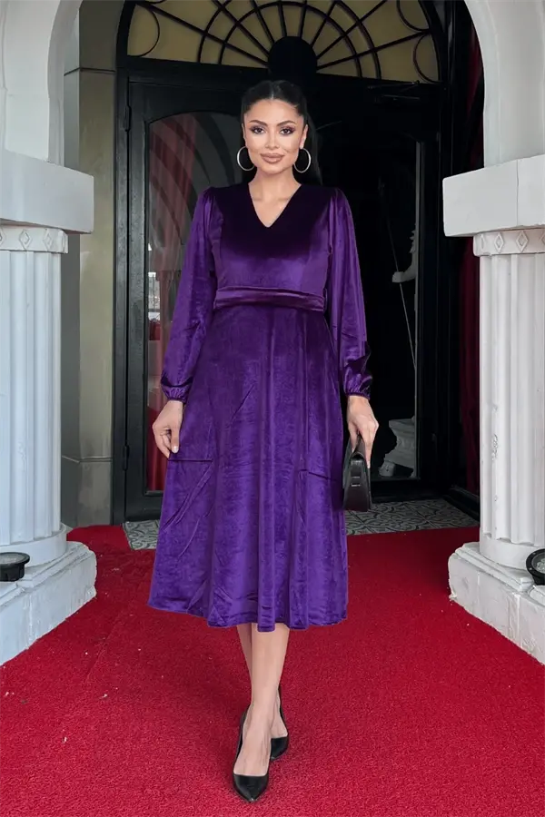 Представляем вам бархатное платье миди с V-образным вырезом, представляющее собой идеальное сочетание элегантности и комфорта! Это очаровательное платье баклажанового цвета позволит вам блистать в любой обстановке, от особых мероприятий до стильных ужинов. Уникальная текстура бархатной ткани нежно прикасается к вашей коже, а V-образный вырез подчеркивает вашу женственность. Длина миди создает современный и изысканный вид, не ограничивая вашей свободы движений. Подкладка обеспечивает комфорт в течение всего дня. Это платье – не просто одежда, это выражение стиля. Глубокий и привлекательный оттенок баклажана подходит для любого цвета кожи, делая вас более живой и энергичной. Это платье станет незаменимым в вашем гардеробе и легко сочетается с различными аксессуарами. Наденьте его с элегантным колье и туфлями на каблуках для особого случая или с изящным шарфом и балетками для повседневного шика. В любом случае, с бархатным платьем миди с V-образным вырезом вы подчеркнете свой стиль. Крой платья мягко подчеркивает изгибы вашей фигуры, создавая безупречный силуэт. V-образный вырез делает вашу шею более длинной и изящной, а также подчеркивает черты лица. Юбка миди идеально демонстрирует ваши ноги, позволяя вам выглядеть современно и стильно. Богатая текстура бархатной ткани отражает свет под разными углами, придавая вашему платью дополнительное измерение. Благодаря этому вы выглядите по-разному и очаровательно при любом освещении. Ткань, состоящая из 95% полиэстера и 5% эластана, сочетает в себе прочность и эластичность. Благодаря этому ваше платье на долгие годы останется как новое и будет адаптироваться к каждому вашему движению. Подкладка обеспечивает плотное прилегание платья к телу, а также предотвращает его просвечивание. Таким образом, вы будете чувствовать себя уверенно и комфортно в течение всего дня. Бархатное платье миди с V-образным вырезом – это не только стильный, но и практичный выбор. Благодаря легкости в уходе и глажке вы всегда будете выглядеть ухоженно и элегантно. Это платье – незаменимая вещь в гардеробе каждой женщины, вневременная вещь. С этим платьем, выбором стильных и уверенных в себе женщин, вы будете выделяться в любой обстановке.