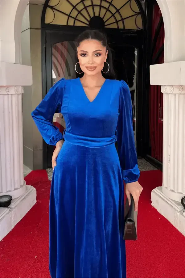 Ощутите элегантность и комфорт с велюровым платьем миди с V-образным вырезом. Это платье ослепительного ЦВЕТА МОРСКОЙ ВОЛНЫ будет сопровождать вас в любой обстановке, от особых мероприятий до повседневной носки. Мягкая текстура велюровой ткани приятно ощущается на коже, а крой миди подчеркивает вашу элегантность. V-образный вырез позволяет изящно продемонстрировать декольте, добавляя современный штрих к общему дизайну платья.Это платье особого дизайна идеально подчеркивает вашу фигуру. Благодаря полному крою оно идеально сидит по фигуре и не сковывает движений. Благодаря своей легкой эластичной структуре оно обеспечивает комфортное использование в течение всего дня. Пояс, дополняющий простоту платья, подчеркивает вашу талию, помогая вам выглядеть стройнее.Велюровое платье миди с V-образным вырезом станет незаменимой вещью в вашем гардеробе. Вы можете надеть его на особый случай в сочетании с элегантными туфлями на каблуке и изящными украшениями или создать более непринужденный образ с кроссовками для повседневной носки. Это платье, которое подчеркнет ваш стиль в любой ситуации, выделит вас в любой обстановке.Платье также очень практично в использовании. Благодаря отсутствию молнии его легко надевать и снимать. Несмотря на отсутствие подкладки, велюровая ткань не просвечивает и обеспечивает удобство ношения. Яркость ЦВЕТА МОРСКОЙ ВОЛНЫ и роскошный вид велюровой ткани вместе подарят вам неповторимый стильный опыт.Всегда чувствуйте себя стильно и уверенно в велюровом платье миди с V-образным вырезом. Это платье особого дизайна — не просто предмет одежды, а форма выражения вашего стиля и индивидуальности. Вы обязательно должны примерить это платье, чтобы почувствовать себя особенной и привлечь внимание. Создавайте незабываемые воспоминания с очаровательным оттенком ЦВЕТА МОРСКОЙ ВОЛНЫ и прикосновением велюровой ткани. Будьте готовы стать самым ценным предметом в вашем гардеробе!