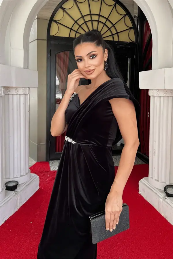 Произведите незабываемое впечатление в особые дни с помощью вечернего платья из бархатной ткани с отделкой камнями - ЧЕРНОГО цвета, которое сочетает в себе привлекательную элегантность и изысканные детали. Это великолепное платье - настоящее произведение искусства, с роскошной текстурой бархатной ткани и сиянием каменных деталей. Каждая деталь этого платья тщательно продумана, чтобы сделать вас самой привлекательной персоной вечера. Длинный и струящийся силуэт платья идеально подчеркивает изгибы вашего тела, а мягкое прикосновение бархатной ткани оставляет приятное ощущение на коже. Каменные детали прекрасно улавливают свет, придавая вашим движениям завораживающий блеск, а благородный черный цвет подчеркивает вашу элегантность. Вечернее платье из бархатной ткани с отделкой камнями - ЧЕРНОЕ - это не просто платье, это выражение. Этот дизайн, который заставит вас почувствовать себя особенной и уверенной, может сопровождать вас на любых мероприятиях, от приемов до гала-концертов, от свадеб до особых торжеств. Это платье отражает вневременную линию моды, а также соответствует современным тенденциям благодаря своим современным деталям. С этим платьем, которое станет самым ценным предметом вашего гардероба, вы сможете продемонстрировать свой стиль в любой обстановке. Создавайте незабываемые воспоминания и заявите о себе своей элегантностью. Откройте для себя идеальную гармонию элегантности и стиля с вечерним платьем из бархатной ткани с отделкой камнями - ЧЕРНЫМ. Будьте готовы стать звездой вечера!