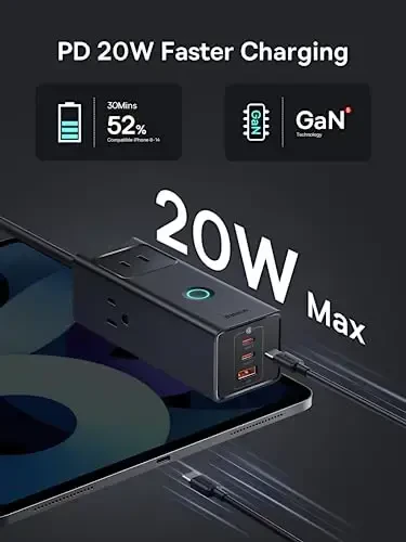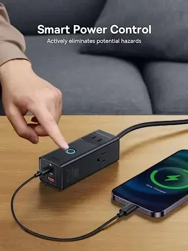 Baseus Power Strip Surge Protector 1200J is designed to safely charge and protect your electronic devices. The product is made of high-quality materials and offers long-lasting and reliable use. Surge protection protects your devices against sudden voltage fluctuations, preventing possible damage. Thanks to the PD20W USB-C fast charging feature, you can charge your compatible devices in a shorter time. Its compact design easily adapts to any environment and eliminates cable clutter. The Baseus Power Strip offers a safe and efficient charging experience in your home, office or dorm room.