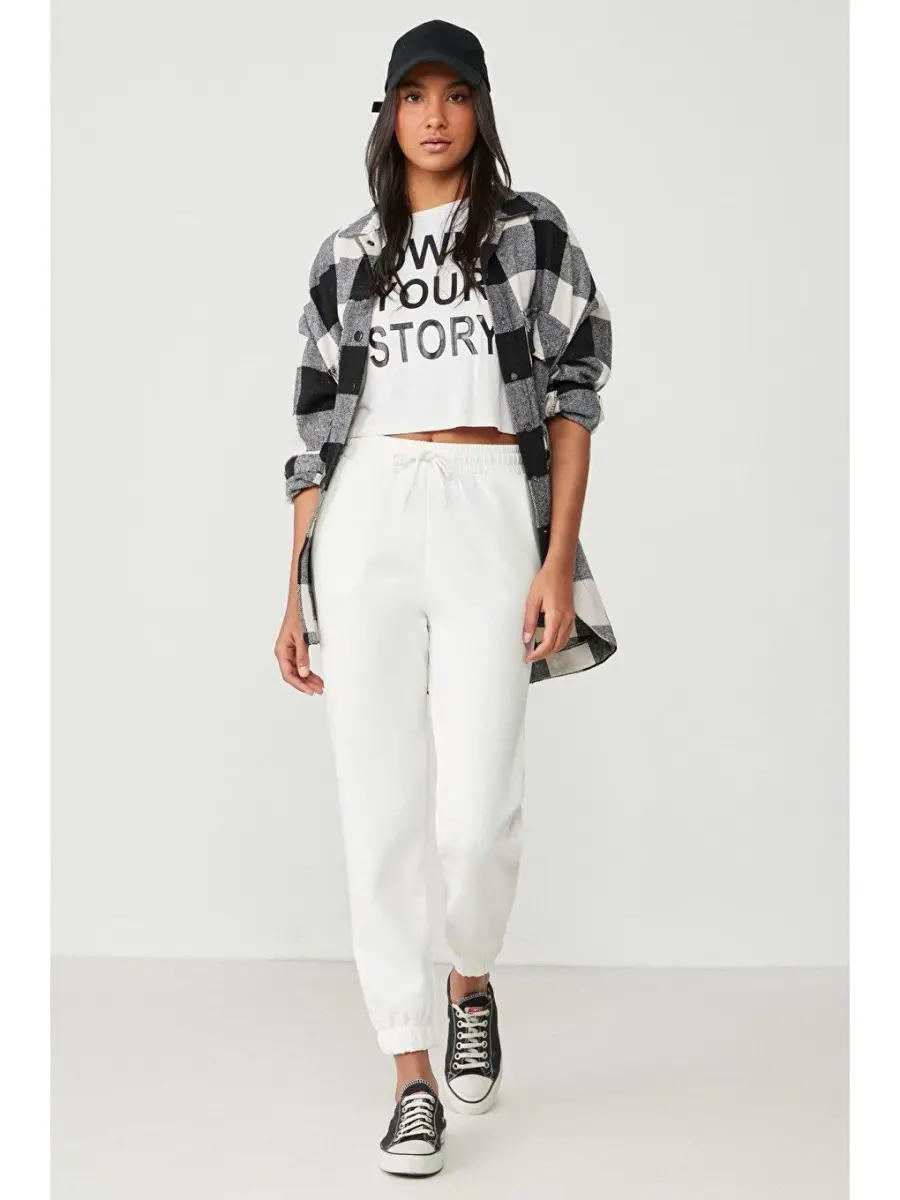 Comfortable fit Basic Jogger Sweatpants offer all-day comfort thanks to their cotton fabric. They do not restrict your freedom of movement with their adjustable drawstring waist detail and ribbed cuffs. Ideal for daily use.Product DescriptionExperience comfort and style together with Basic Jogger Sweatpants 802 Ecru-Ecru. If you don't want to compromise on your comfort in the hustle and bustle of daily life, these sweatpants are for you. Its high-quality cotton fabric gently touches your skin, allowing it to breathe all day long and minimizing perspiration. In this way, whether you are relaxing at home or meeting friends outside, you will always feel refreshed and comfortable. Its comfortable fit fits you without restricting your freedom of movement. Whether you are doing sports, going for a walk or just relaxing, Basic Jogger Sweatpants accompany you. The adjustable drawstring waist detail allows you to adjust the sweatpants to your own body, so you always get a perfect fit. Ribbed cuffs keep your ankles warm in cold weather while making the sweatpants look modern and stylish. Basic Jogger Sweatpants 802 Ecru-Ecru stands out not only for its comfort but also for its elegance. The ecru color is compatible with all kinds of combinations and becomes an indispensable part of your wardrobe. You can easily combine it with T-shirts, sweatshirts, sneakers or casual shoes and reflect your own style. Whether you are lounging in pajamas at home or having coffee with friends outside, Basic Jogger Sweatpants are always with you. Thanks to its high-quality material and durable structure, you can use it for many years. It is also very easy to clean thanks to its machine washable feature. These sweatpants are an ideal choice for those looking for both comfort and style. Enjoy being comfortable and stylish at all times with Basic Jogger Sweatpants 802 Ecru-Ecru, which will be one of the essentials of your wardrobe.Product Features* Comfortable fit* Cotton fabric* Adjustable drawstring waist* Ribbed ankles* Ideal for daily useAdditional InformationThe product on the model is size S. Product content: 100% Cotton. It is recommended to wash according to the washing instructions.