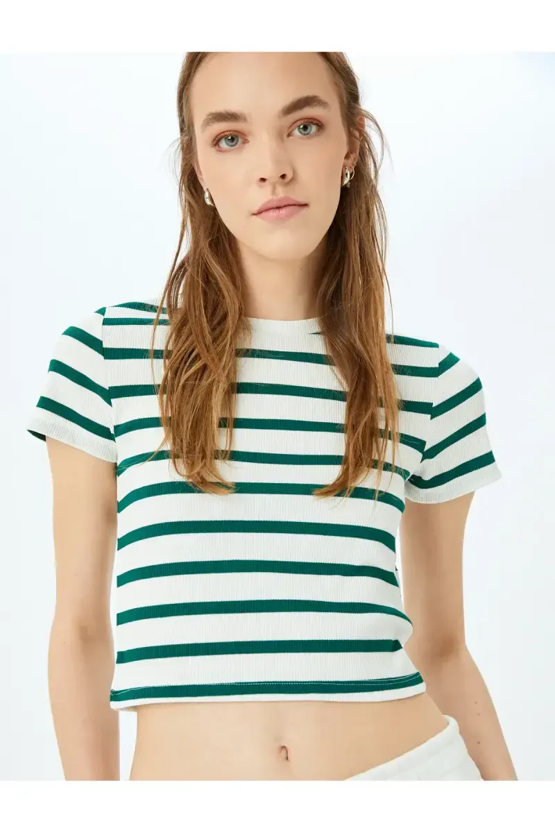 Basic t-shirt, striped t-shirt, crew neck, green t-shirt, women's t-shirt, comfortable t-shirt, casual t-shirt, cotton t-shirt, sports t-shirt, stylish t-shirt