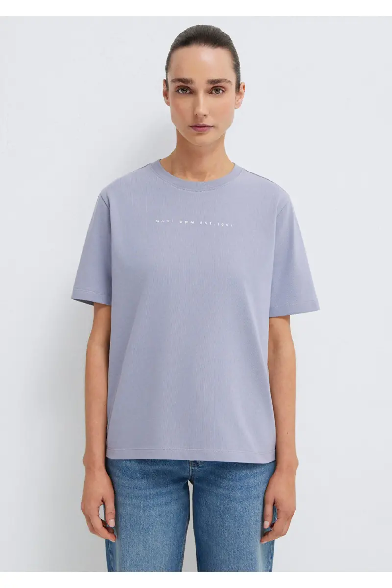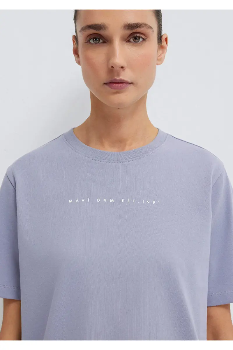 Baskılı Mor Tişört Regular Fit / Normal Kesim 1613147-81919-Mor