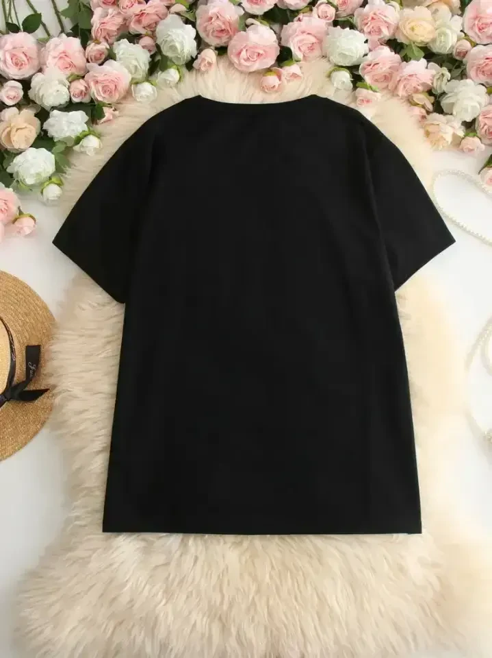 Express your style with the Black Printed Oversize Crew Neck T-shirt! This unique design combines comfort and elegance, making it a must-have in your wardrobe. Thanks to its oversize cut, you can move freely throughout the day, and with its crew neck detail, you can achieve a modern look. Its high-quality cotton fabric allows your skin to breathe while offering long-lasting use. The unique print on it adds a personal touch to your style, while the elegance of black is compatible with every combination. You can create different styles by combining it with your jeans for daily use or with a stylish skirt. Our model's measurements are (Height: 165, Weight: 55, Chest: 90, Waist: 72, Hips: 100), and the product on her is size M/38. You can get a perfect look by choosing the one that suits your size. This t-shirt is not just a piece of clothing, but also a form of expression. It is an ideal choice to reflect your own style and attract attention. This t-shirt, which will highlight your style both in your daily activities and in your special meetings, will be one of the most loved pieces of your wardrobe. You will feel good all day long with the timeless elegance of black and the comfort of the oversize cut. Moreover, the print on the t-shirt is designed to maintain its original vibrancy for a long time without fading. In this way, you can safely use your t-shirt for many years. This t-shirt, which is a perfect option for those looking for elegance and comfort together, also attracts attention with its wearable structure in every season. You can always be stylish and comfortable by combining it with a jacket or cardigan in winter and alone in summer. Reflect your style and make a difference in every environment with the Black Printed Oversize Crew Neck T-shirt!