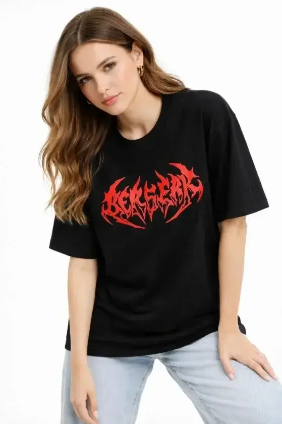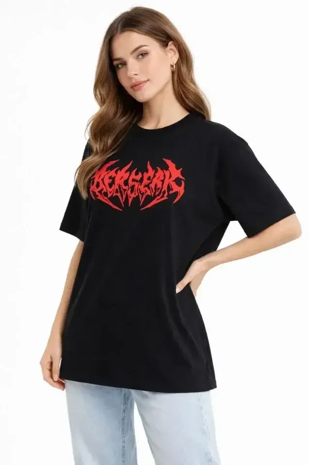 Baskılı T-Shirt Yazlık Kısa Kol Bisiklet Yaka Rahat Kalıp Tişört - Siyah