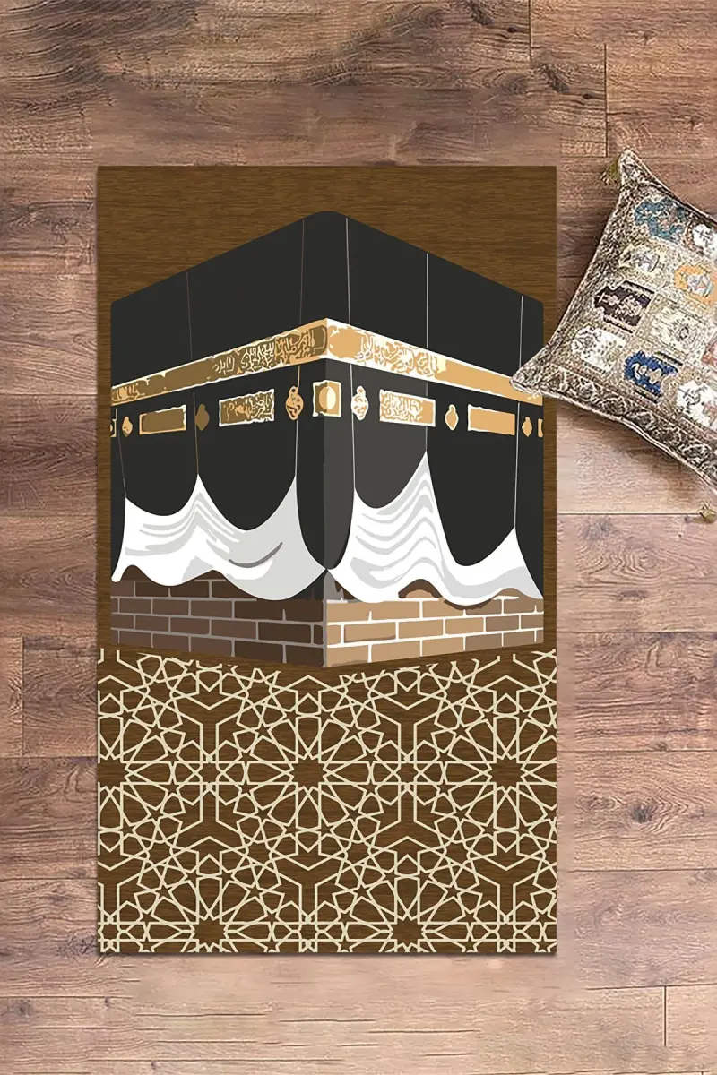 Namaz Halısı, Seccade, Kabe Motifli, Yıkanabilir, Hediyelik, EVDEYA, Dekoratif Halı, Kahverengi, Dijital Baskı, Kaymaz Taban