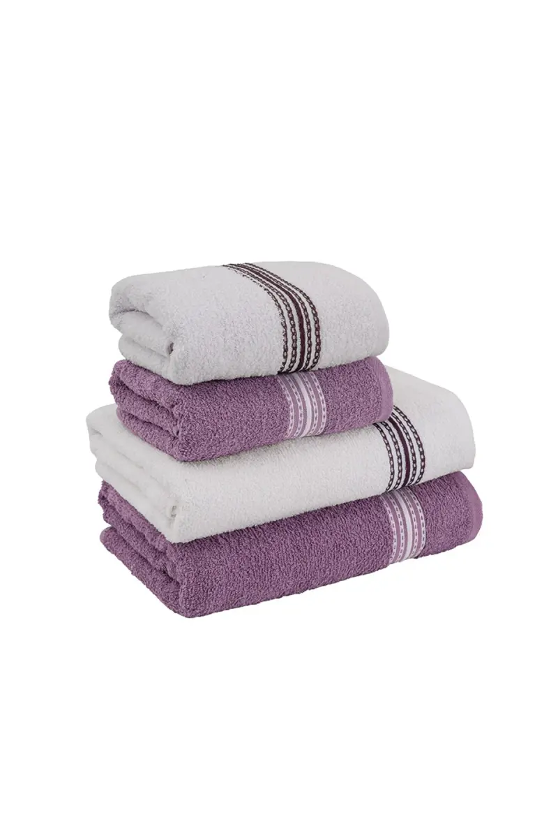 Bring elegance and comfort to your bathroom with the Elvin Bath Hand Towel Set. The enchanting harmony of lilac and white adds a sophisticated touch to your bathroom decor, while the soft texture made from high-quality cotton yarn offers a gentle caress to your skin with every use. This set of 4 includes two 70x140 cm bath towels and two 50x90 cm hand towels. Thanks to their ideal sizes, they provide both practical use and create a neat look in your bathroom. The Elvin towel set not only offers a stylish design but also perfects your post-bath drying experience with its high absorbency. Water is quickly absorbed, leaving a pleasant feeling of freshness on your skin. With its long-lasting structure, resistance to repeated washing, and the ability to maintain the vibrancy of its colors, the Elvin towel set is poised to become an indispensable part of your bathroom. This towel set, produced with Elvin quality, offers a perfect gift option for yourself and your loved ones. Choose the Elvin Bath Hand Towel Set to create a luxurious atmosphere in your bathroom and add pleasure to your daily routine. Remember, with Elvin, your bathroom is not just a cleansing area, but also transforms into a relaxation and rejuvenation ritual. The calming effect of lilac and white helps you relieve the fatigue of the day, while its soft texture gently touches your skin. The Elvin Bath Hand Towel Set is designed to take your bathing experience to the next level. Ideal for both daily use and for your guests, this set will enhance the elegance and comfort of your bathroom. Meet Elvin quality, feel the difference in your bathroom!