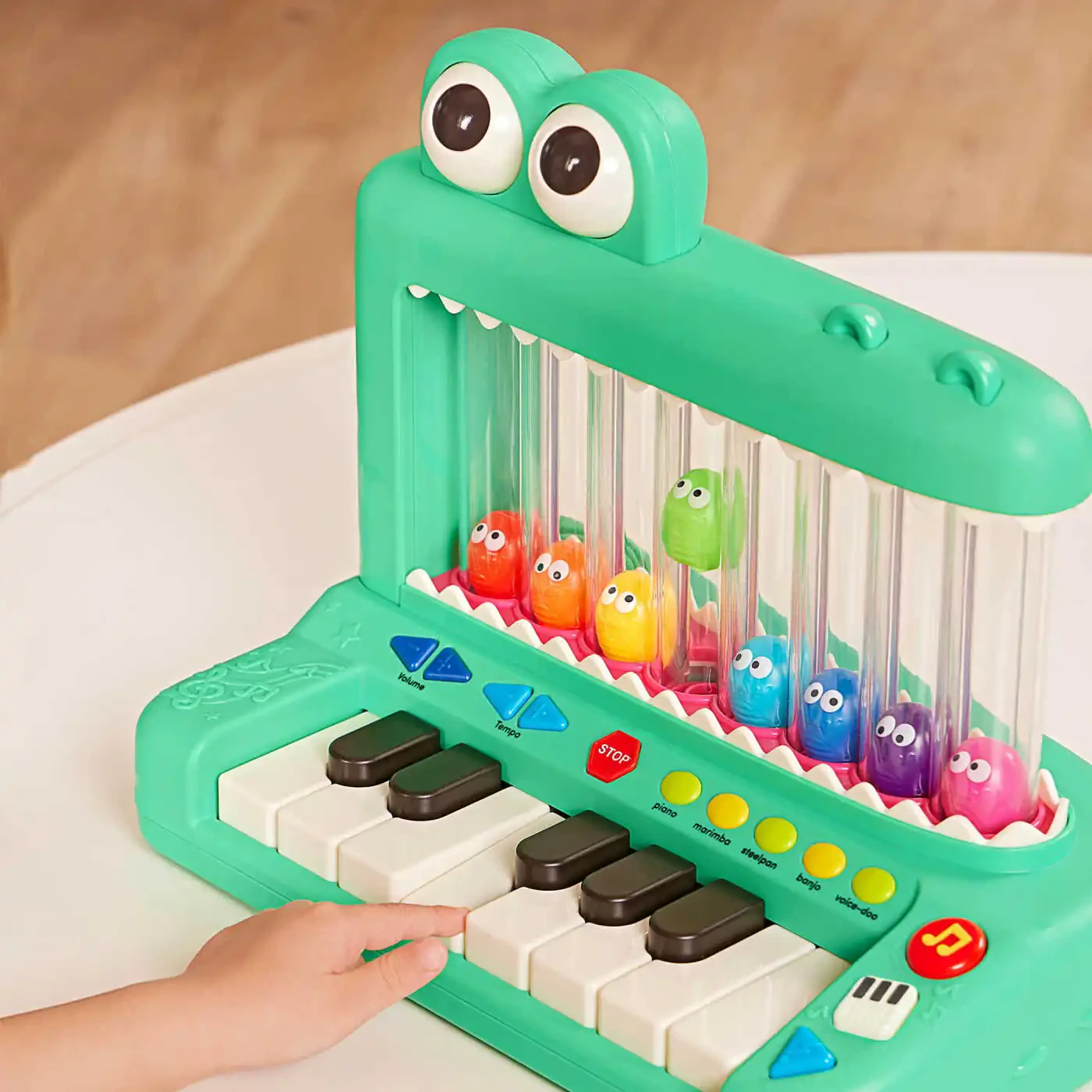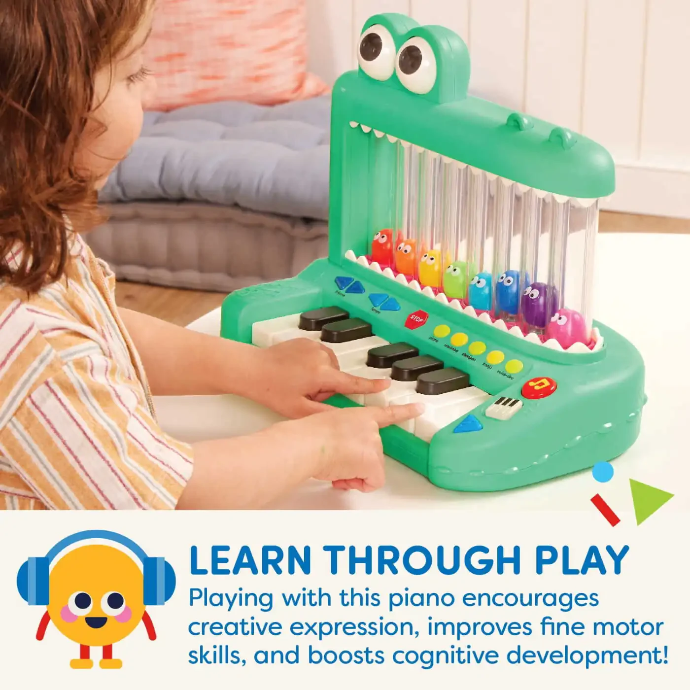 Kichkina musiqachilar uchun mukammal o'yinchoq bo'lgan Battat Croco Pop Piano O'yinchoq Klaviaturasi, chaqalog'ingizning musiqa dunyosiga qadam qo'yishi uchun ajoyib yo'ldir. Yorqin ranglar, kulgili tovushlar va miltillagan chiroqlar chaqalog'ingizni soatlab xursand qiladi va uni musiqiy kashfiyot safariga olib boradi.