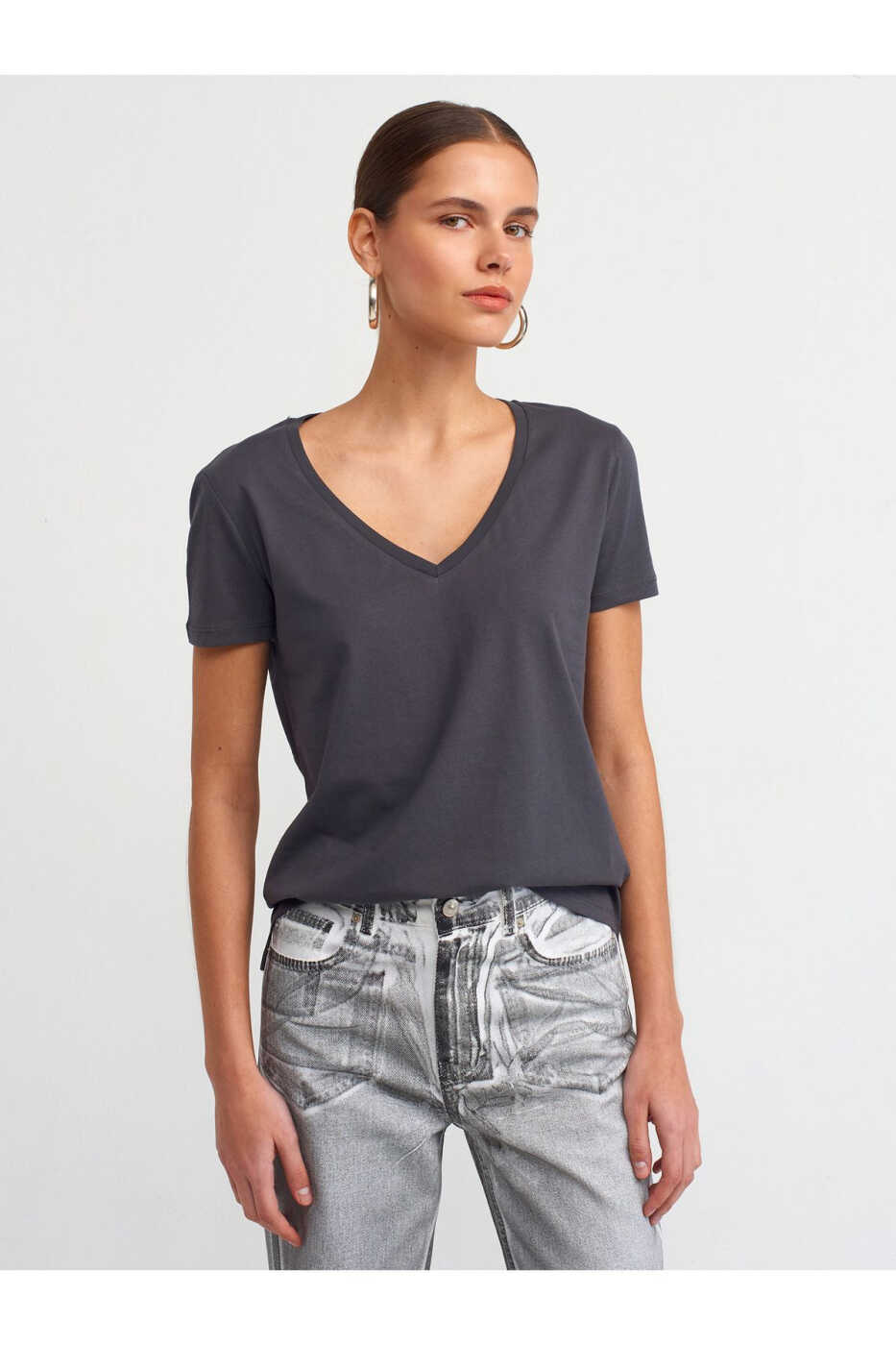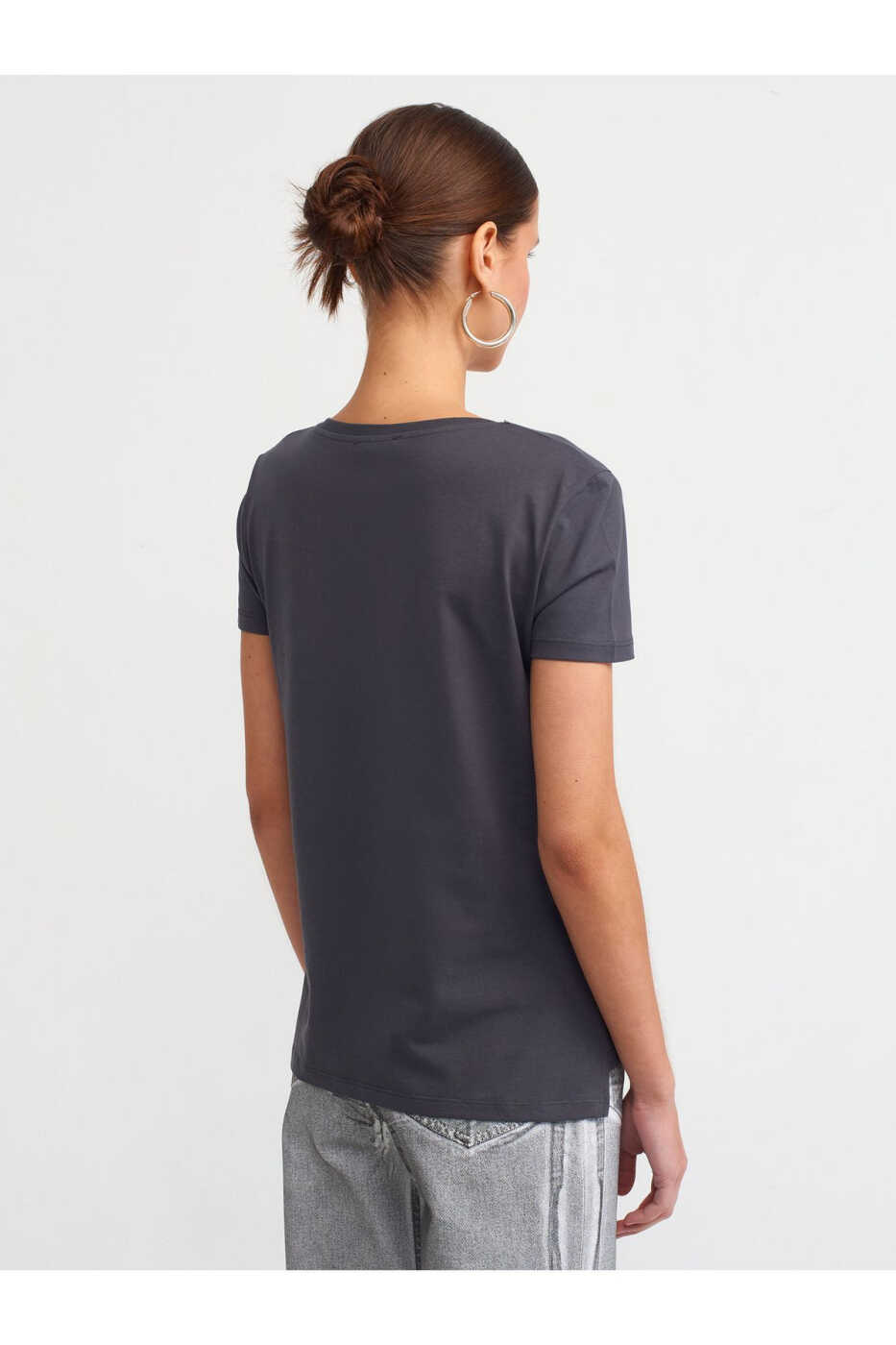 Благодаря антрацитовому цвету базовую футболку с V-образным вырезом 3470 можно сочетать с любым нарядом, и она станет вашим верным спутником как в повседневной жизни, так и на особых мероприятиях. Эта футболка с лаконичным дизайном поможет вам дополнить свой стиль, сочетаясь с другими вещами, которые вы на нее наденете.