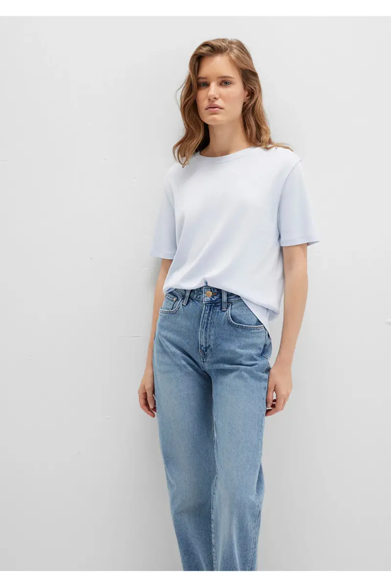 Modelin üzerindeki beden M'dir. Ürün içeriği %100 pamuktur. Renklerin daha uzun süre canlı kalması için düşük sıcaklıkta ve tersten yıkama önerilir.