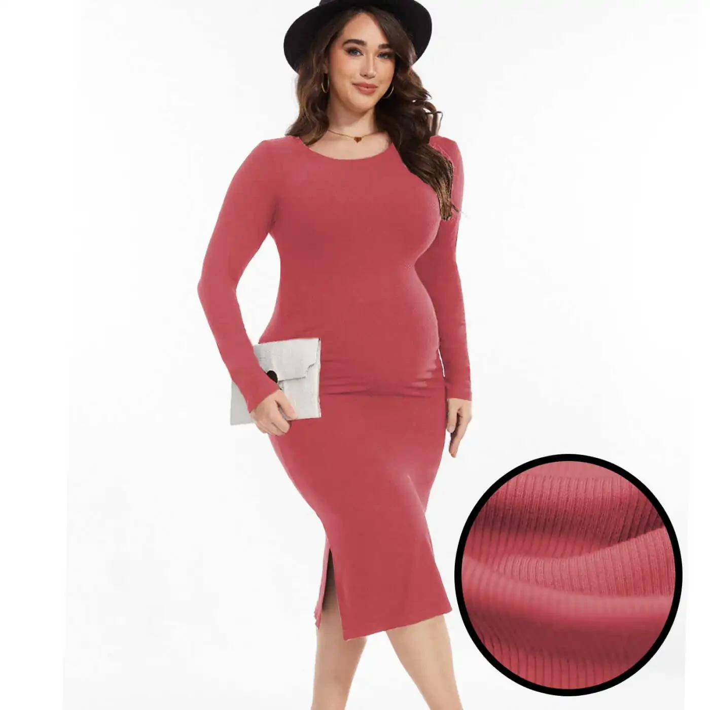 Bearsland Women's Long Sleeve Ribbed Knit Side Slit Maternity Dress Casual Ruched Bodycon Sweater Dress Pregnancy Clothes-