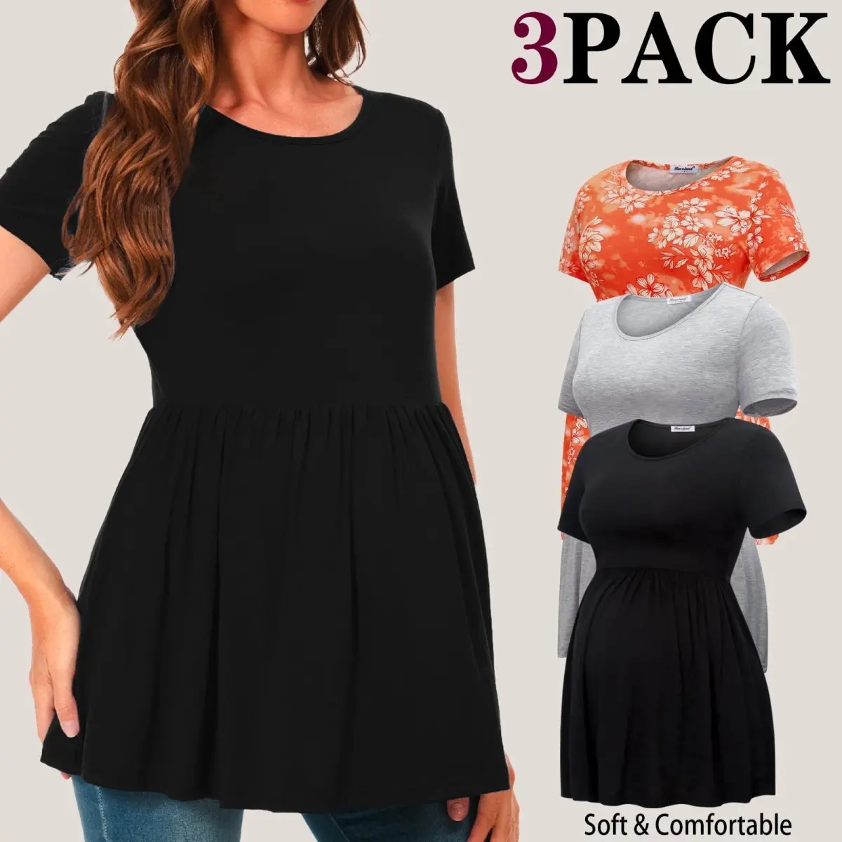 Bearsland Women's Short Sleeve Maternity T-shirts Tops Maternity Clothes 3-Pack is a perfect choice for expectant mothers, combining comfort and elegance. Made from soft, comfortable, flexible and lightweight modal fabric, these t-shirts are designed to accompany you at every stage of your pregnancy. The superior quality modal fabric allows your skin to breathe and keeps you comfortable all day long. Thanks to its flexible structure, it adapts to your growing belly and does not restrict your freedom of movement. The elegant and modern empire waistline and rich pleats prevent you from compromising your elegance during your pregnancy. Perfect for everyday use, special occasions or relaxing, these t-shirts will take their place among the indispensable pieces of your wardrobe. It can be easily combined with any pants, skirt or tights to create a stylish look. Bearsland 3-pack maternity t-shirts offer different color and pattern options, so you can choose the one that suits your style and taste. These t-shirts are not only comfortable and stylish, but also practical. Thanks to its machine washable feature, it can be easily cleaned and used for a long time. Bearsland Maternity T-shirts, an ideal choice for expectant mothers looking for comfort, elegance and practicality during pregnancy, will make you feel special. You can also comfortably use these t-shirts in the postpartum period, and they will keep their place in your wardrobe for a long time. This special product, which you can also consider as a gift to your loved ones, is one of the best gifts that can be given to expectant mothers. Bearsland is a brand that aims to offer you comfort and elegance during your pregnancy, and these t-shirts are one of the best examples of this goal.