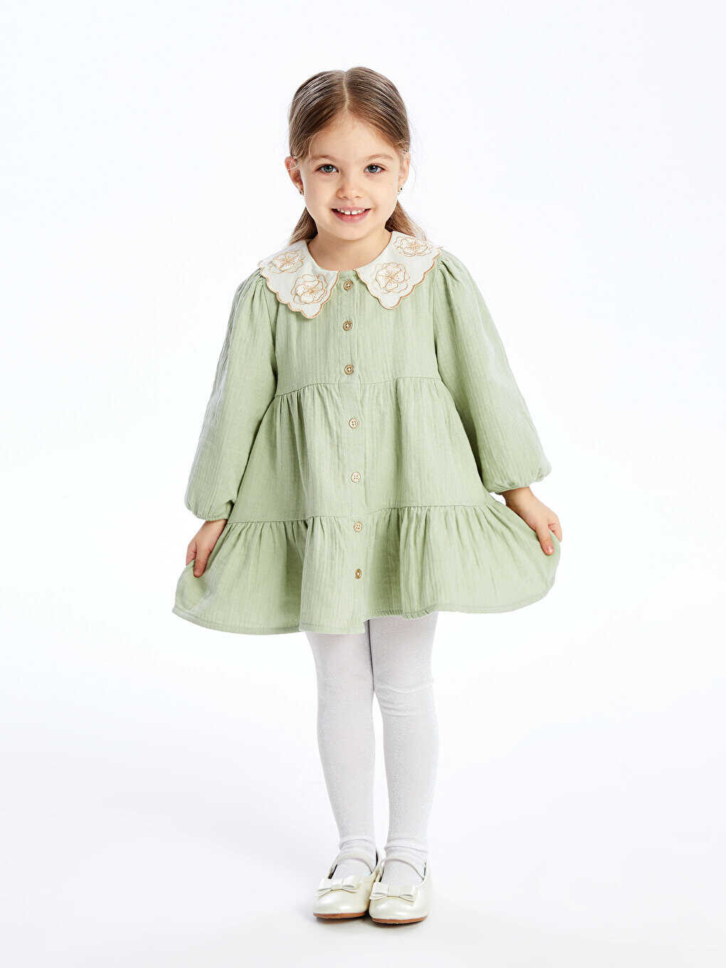 Bebe Yaka Uzun Kollu Kız Bebek Elbisesi | Şık ve Rahat | Online Satış