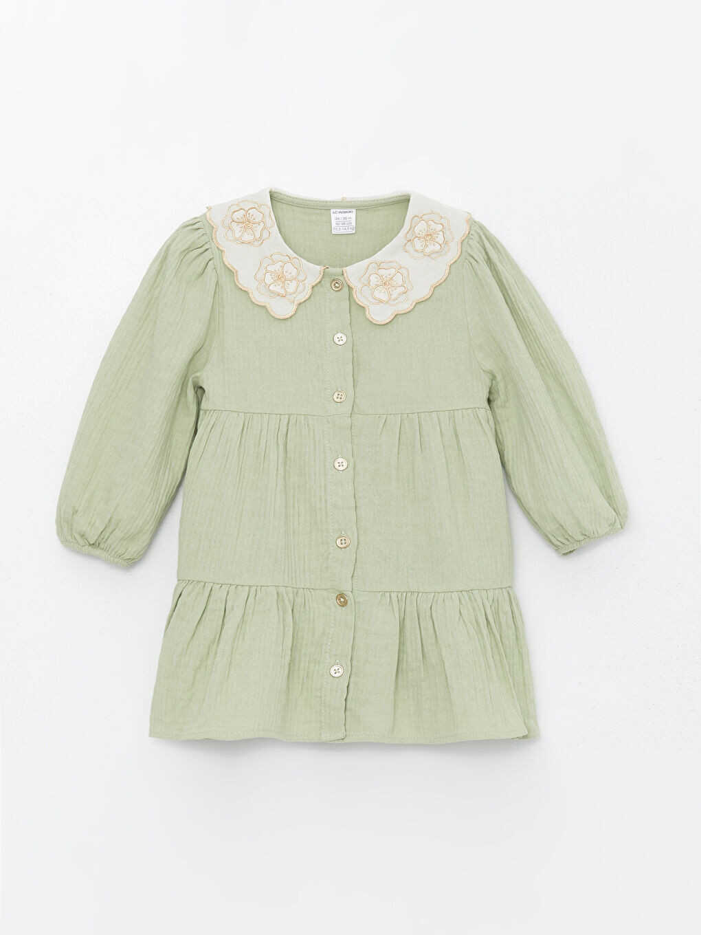 Bebe Yaka Uzun Kollu Kız Bebek Elbisesi