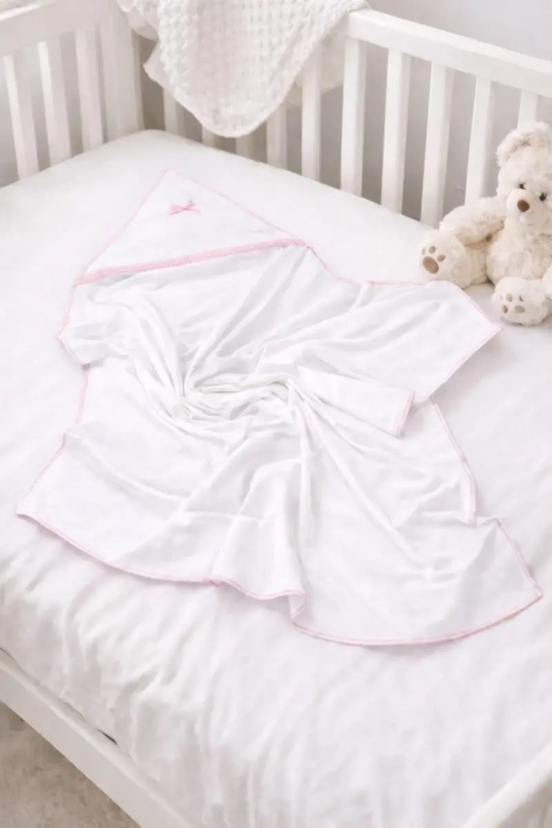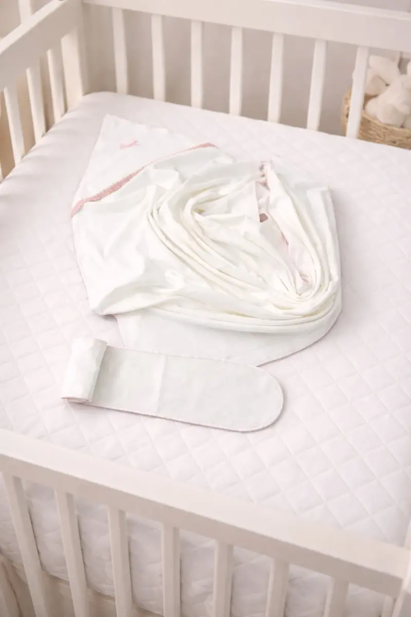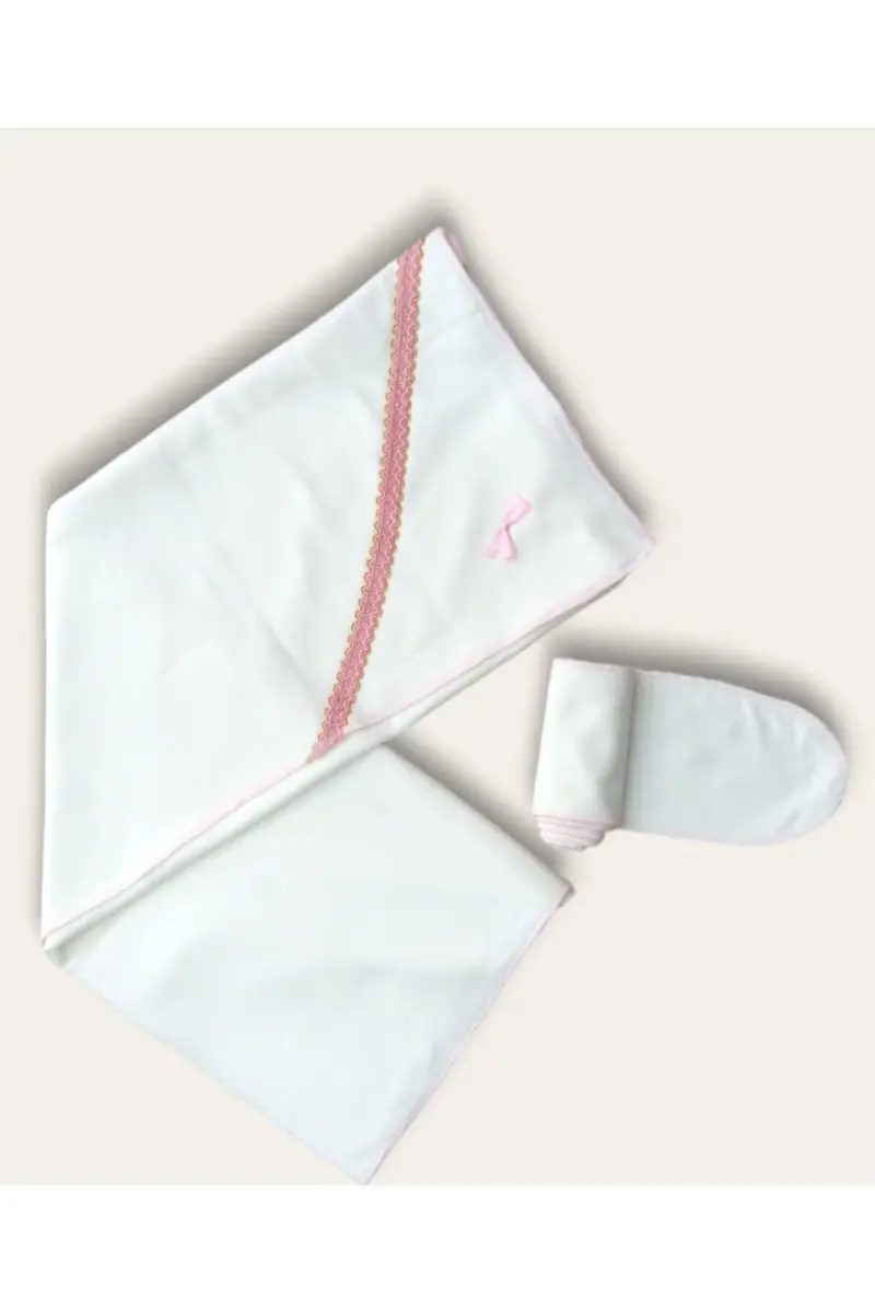 Bebek 100% pamuklu Kemerli kundak 70*70 cm. -Beyaz Pembe