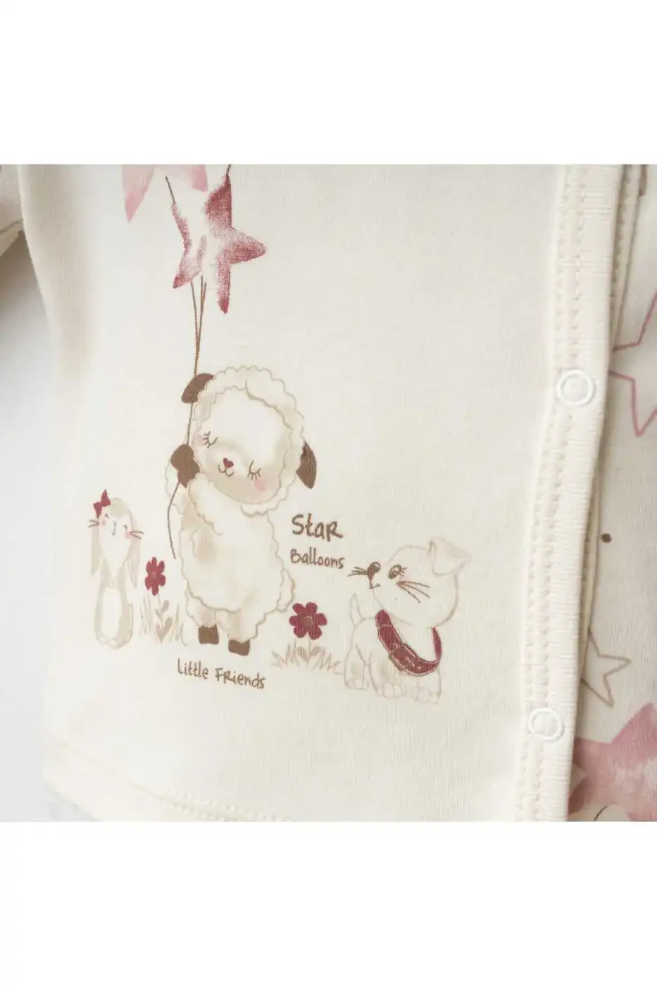 Minik bebeğinizin konforunu ve şıklığını bir araya getiren bu 3'lü takım, yumuşacık %100 pamuk kumaştan üretilmiştir. Sevimli kuzu baskısıyla bebeğinizin stilini tamamlayacak bu takım, günlük kullanıma ve özel günlere uygun olarak tasarlanmıştır.