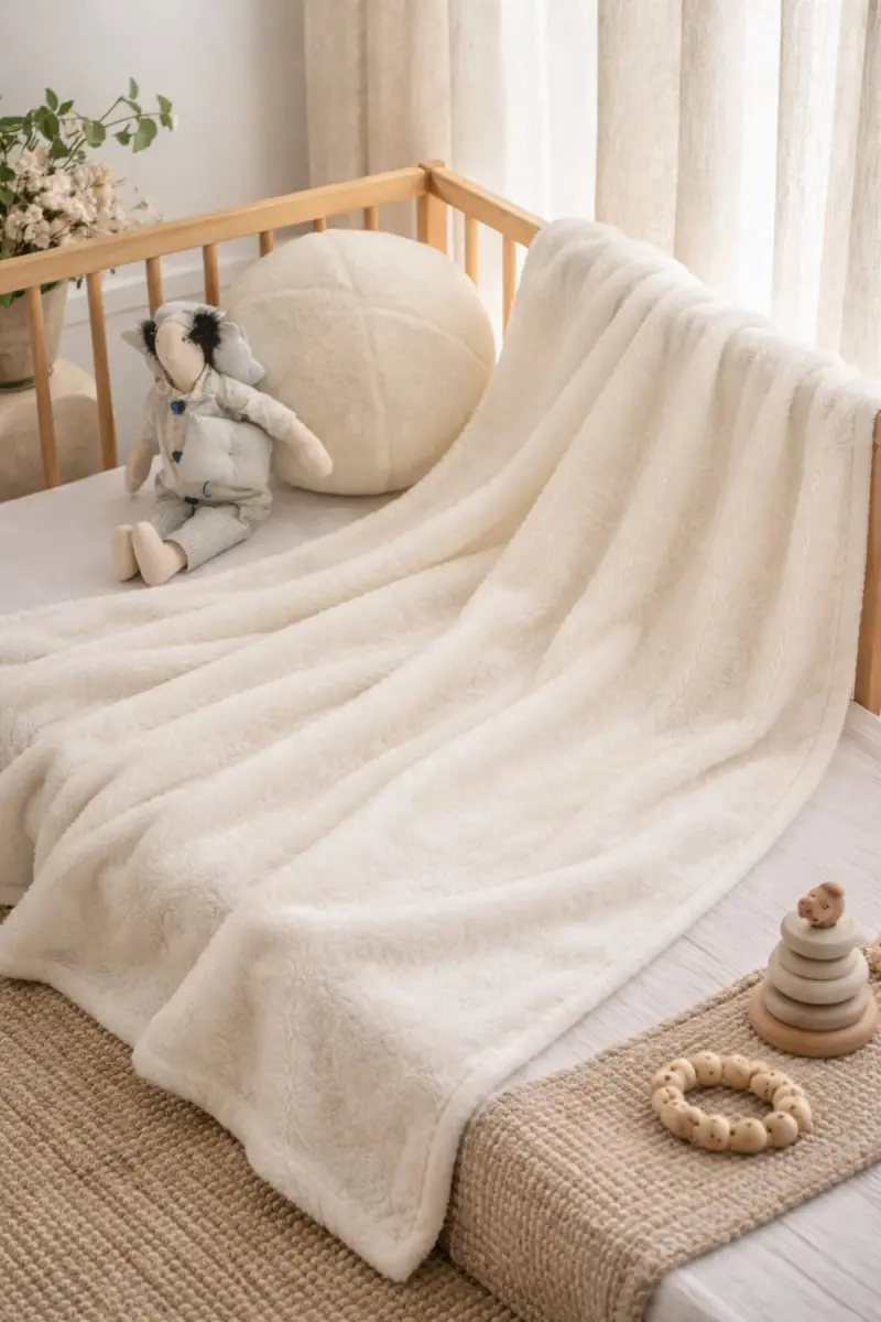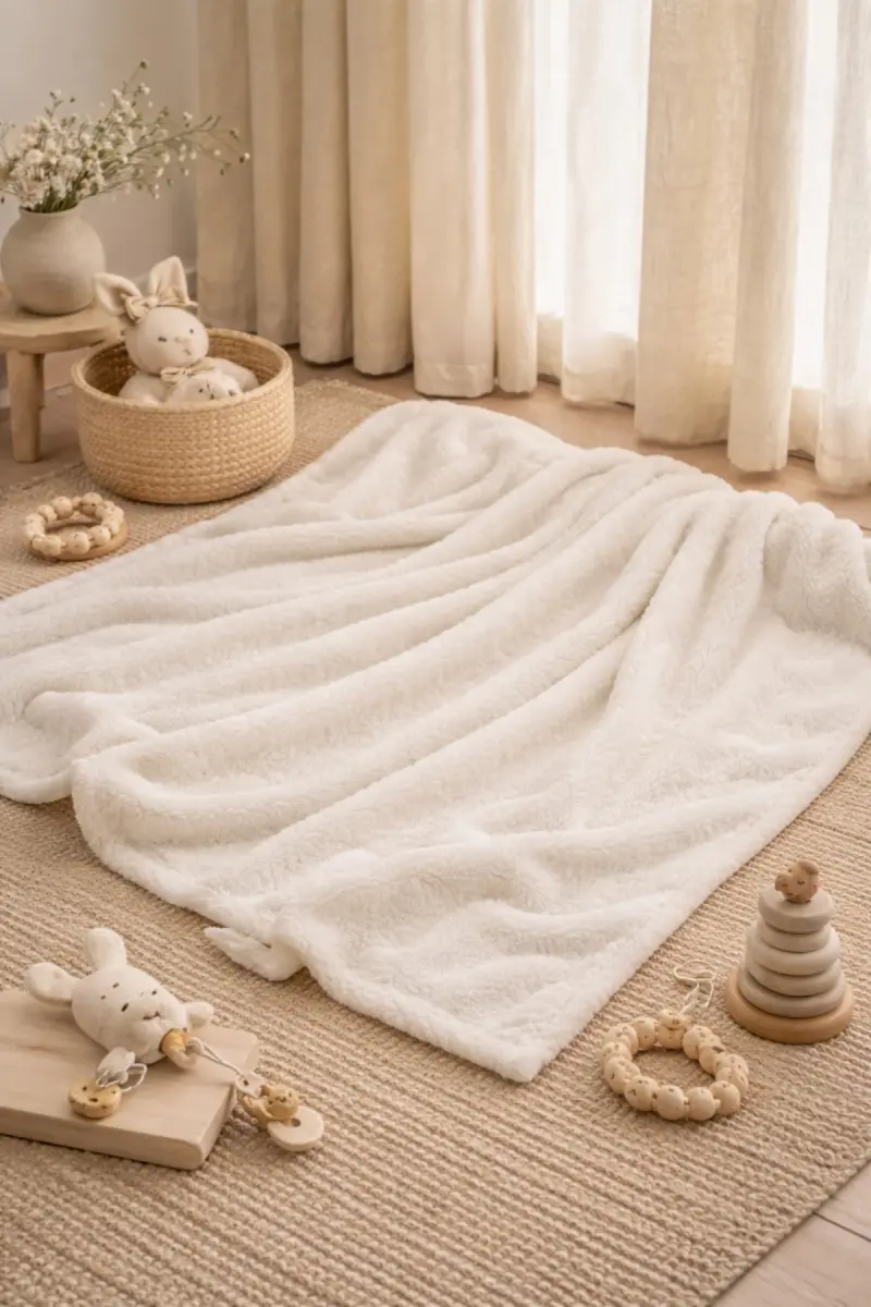 Bebek Battaniyesi 90x100 Yumuşak Dokulu Sade Tasarım-Ekru Krem Düz
