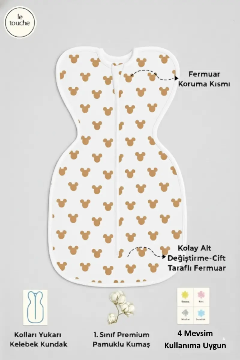 Bu ürün Le Touche tarafından gönderilecektir.Kampanya fiyatından satılmak üzere 100 adetten fazla stok sunulmuştur.İncelemiş olduğunuz ürünün satış fiyatını satıcı belirlemektedir.Bir ürün, birden fazla satıcı tarafından satılabilir. Birden fazla satıcı tarafından satışa sunulan ürünlerin satıcıları ürün için belirledikleri fiyata, satıcı puanlarına, teslimat statülerine, ürünlerdeki promosyonlara, kargonun bedava olup olmamasına ve ürünlerin hızlı teslimat ile teslim edilip edilememesine, ürünlerin stok ve kategorileri bilgilerine göre sıralanmaktadır.Bu üründen en fazla 5 adet sipariş verilebilir. 5 adedin üzerindeki siparişleri Trendyol iptal etme hakkını saklı tutar. Belirlenen bu limit kurumsal siparişlerde geçerli olmayıp, kurumsal siparişler için farklı limitler belirlenebilmektedir.15 gün içinde ücretsiz iade. Detaylı bilgi için [page="return_conditions"]tıklayın .- Yenidoğan bebekler için özel olarak tasarlanmış, kendi kendini yatıştıran özelliği ile rahat bir uyku deneyimi sunar.- Bisiklet yaka tasarımı sayesinde bebeğinizin boynunu rahatsız etmeden konforlu bir kullanım sağlar.- Orta silueti ile bebeğinizin vücut hatlarına uyum sağlayarak hareket özgürlüğünü kısıtlamaz.- Basic koleksiyonun sadeliği ve şıklığı, her türlü günlük kullanım için idealdir.- Pamuk materyali sayesinde bebeğinizin cildi nefes alabilir ve yumuşak bir dokunuşa sahiptir.- Casual/Günlük ortamlarda rahatlıkla tercih edilebilecek tasarımıyla her an yanınızda.- Sürdürülebilirlik detayına sahip olması, çevre dostu bir tercih yapmanızı sağlar.- 3 farklı beden ve dar kalıbı ile bebeğinizin hareketlerini kısıtlamadan tam oturur.- Animal deseniyle sevimli ve eğlenceli bir görünüm sunar.- Unisex cinsiyetiyle hem erkek hem de kız bebekler için uygundur.- Örme kumaş tipi, dayanıklılık ve konforu bir arada sunarak uzun süreli kullanım sunar.