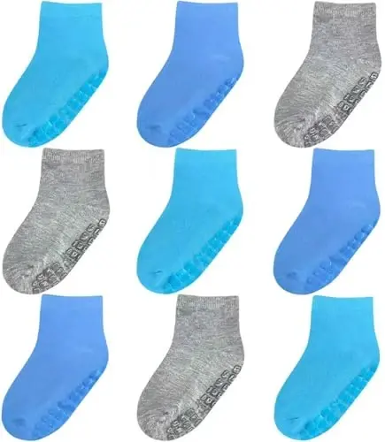 Маленькие шаги теперь безопаснее и комфортнее! Baby Mid-Crew Socks with Grips — это набор из 9 пар носков с нескользящей подошвой, специально разработанный для младенцев и детей в возрасте от 0 до 7 лет. Эти носки идеально подходят для поддержки вашего ребенка при первых шагах и предотвращения падений. Благодаря высококачественному хлопку, они не раздражают чувствительную кожу и обеспечивают комфорт в течение всего дня. Эластичная структура обеспечивает идеальную посадку на растущие ноги, не сдавливая лодыжки. В каждый комплект входит мешок для стирки, чтобы продлить срок службы носков и предотвратить их потерю. Этот набор, представленный в стильной подарочной коробке, является как практичным, так и стильным вариантом подарка. Эти носки, которые ставят во главу угла здоровье и безопасность ног вашего ребенка, обладают характеристиками, которые успокоят родителей. Кроме того, как и все продукты Simply Kids, эти носки сертифицированы CPSIA, что означает, что они не содержат токсичных веществ и являются гипоаллергенными. Это гарантирует безопасность кожи вашего ребенка. Усовершенствованная технология нескользящей подошвы помогает вашему ребенку делать более твердые шаги, а благодаря долговечности и простоте ухода вы можете использовать их в течение длительного времени. Этот набор из 9 штук идеально подходит для повседневного использования и предлагает варианты цветов и узоров, которые подойдут к любому наряду. Эти носки, созданные для комфорта и безопасности вашего ребенка, являются незаменимым продуктом для каждого родителя. Независимо от того, покупаете ли вы их для себя или дарите своим близким, Baby Mid-Crew Socks with Grips всегда будут правильным выбором.