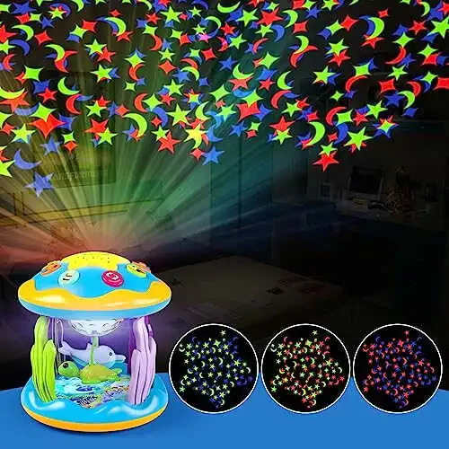 Bebekler İçin 4'ü 1 Arada Müzikli Dönen Projektör Oyuncak - 6-12 Ay