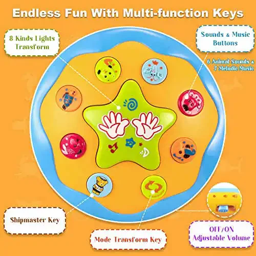 【Ocean Rotating Light Up Toys】The baby toys 6-12 12-18 months can play kinds of melodies, and the dolphin and turtle can rotate 360 degrees with beautiful lights, which build-up a wonderful undersea world atmosphere, stimulate toddler's unlimited imagination. It's easy for baby to press the top big button to make it play music and light the colorful lights. 【Musical Toys with Animals Sounds】Our baby musical toys has 2 levels of volume adjustment button to make the music softer or louder, which can protect toddlers hearing. The sound of animal effects would definitely make your baby laugh. This tummy time toy has lots of functions to keep 3 6 8 9 month old boys girls busy. 【Great for Babies to Learn to Crawl】This infant toys 3-6 6-12 months can roll like a ball, ideal baby crawling & walking toys. Besides, there are wheels at the bottom of the 6 9 12 month old baby toys , baby can push and move it. Learning toys for babies 6 7 8 9 months, 3 month old toys for babies early development. 【Excellent Sleeping Pacify Toys】The baby light up toy is designed for kids who are afraid of the dark, soft lights accompany them spend every nights. Put it beside bed, create a warm and romantic atmosphere, help baby fall asleep quickly. What a wonderful one year old birthday gift, toddler toys age 1-2, musical toys for 1 year old boy girl. 【Buy with Confidence】Our baby toys 6 to 12 months are made from high-quality ABS material, smooth edges without burrs, will not hurt your baby's little hands. Please feel free to contact us if the baby light up musical toys don't meet your expectations, we will handle it properly for you within 24 hours.
