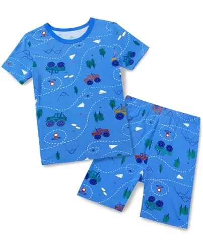 【High-Quality Material】Made of bamboo viscose, these toddler pajamas are super soft, smooth, lightweight and breathable; your little ones will feel comfy and free while in this pajama set. Designed with cute prints with cars.【No Tag】 Tagless design protects your little one's sensitive skin, ensuring your little one has a comfortable night's sleep.【Snug Fit】 These pajama sets are a snug fit. For better safety, these kids pajamas are snug fitting. If you prefer a looser fit, please order one or two sizes up.【Easy to Wear】 Short sleeve top with round neck and elastic waist shorts make it easy to put on and take off. Perfect for kids to wear during the summer.【Occasions】 This 2-piece pajama set can be worn not only as sleepwear, but also as everyday wear, sportswear, camping or travel wear.Product DescriptionIntroduce your child's summer nights to comfort and style with Bambee Reshinee Bamboo Viscose Toddler Car Pajamas. This stylish and comfortable pajama set cares for your little one's delicate skin, offering a cool and peaceful sleep experience. Made of high-quality bamboo viscose fabric, this pajama set prioritizes your child's comfort with its super soft, smooth, lightweight, and breathable structure. Designed with cute car prints that color the little ones' dream world, this pajama is ideal not only for bedtime but also for play and rest moments. Thanks to its tagless design, it provides all-day comfort without irritating your child's skin. This pajama set will be an indispensable part of your child's wardrobe.Produced with a snug fit design, these pajama sets are manufactured in accordance with safety standards. However, if you prefer a looser fit, you may consider ordering one or two sizes larger. The round neck short-sleeved top and elastic waist shorts make it easy to put on and take off, making things easier for both your child and you. Thanks to its fabric that keeps you cool in summer, it helps your child have a comfortable sleep.This 2-piece pajama set is a perfect option not only for bedtime but also for daily wear, sports activities, camping trips or travels. Your child will be comfortable and look stylish while wearing these pajamas. Add comfort and fun to your child's every moment with Bambee Reshinee Bamboo Viscose Toddler Car Pajamas.Product Features* High quality bamboo viscose fabric* Super soft, smooth, lightweight and breathable structure* Cute car prints* Tagless design* Snug fit* Round neck short sleeve top* Elastic waist shorts* Easy to put on and take off* Ideal for summer months* Suitable for daily wear, sports activities, camping and travelAdditional InformationMaterial: Bamboo Viscose.Fit: Snug Fit. Order one size up for a looser fit.Care Instructions: Machine wash cold. Tumble dry low. Do not bleach.