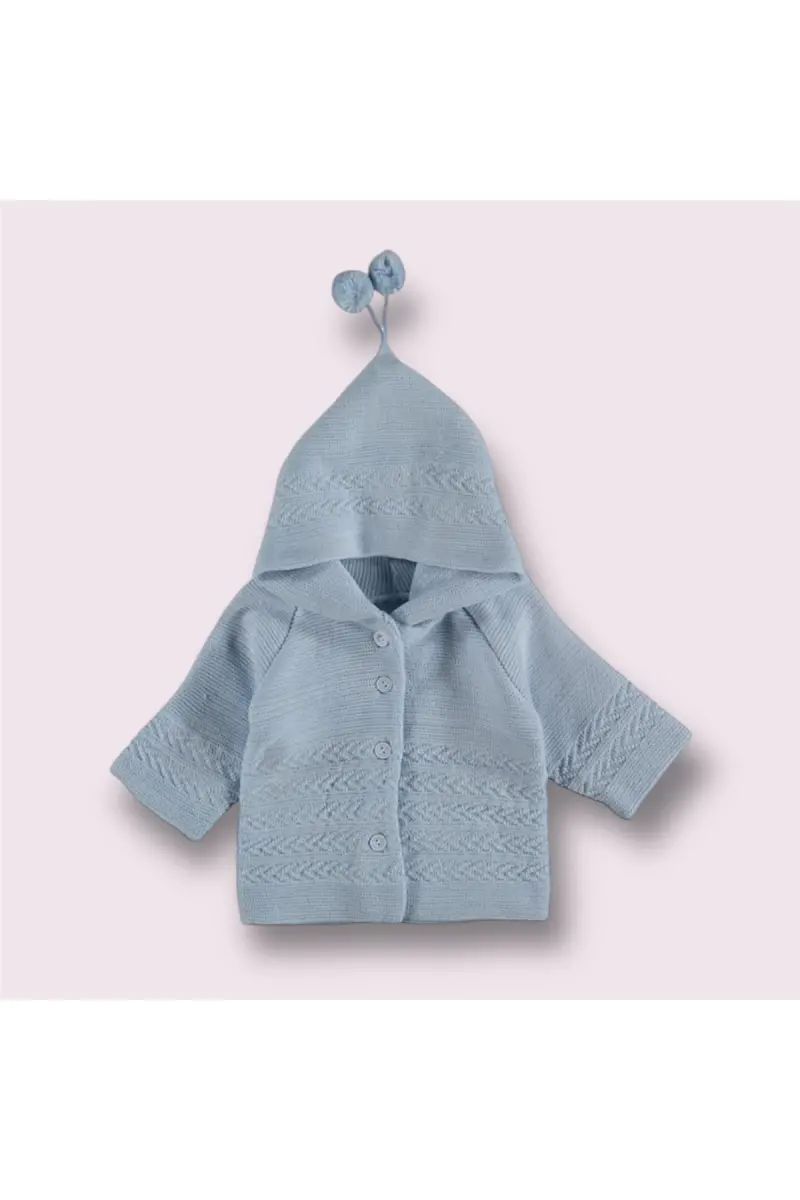 Bebek Triko Çift katlı Kapşonlu Hırka 0-9 ay uyumlu-Mavi