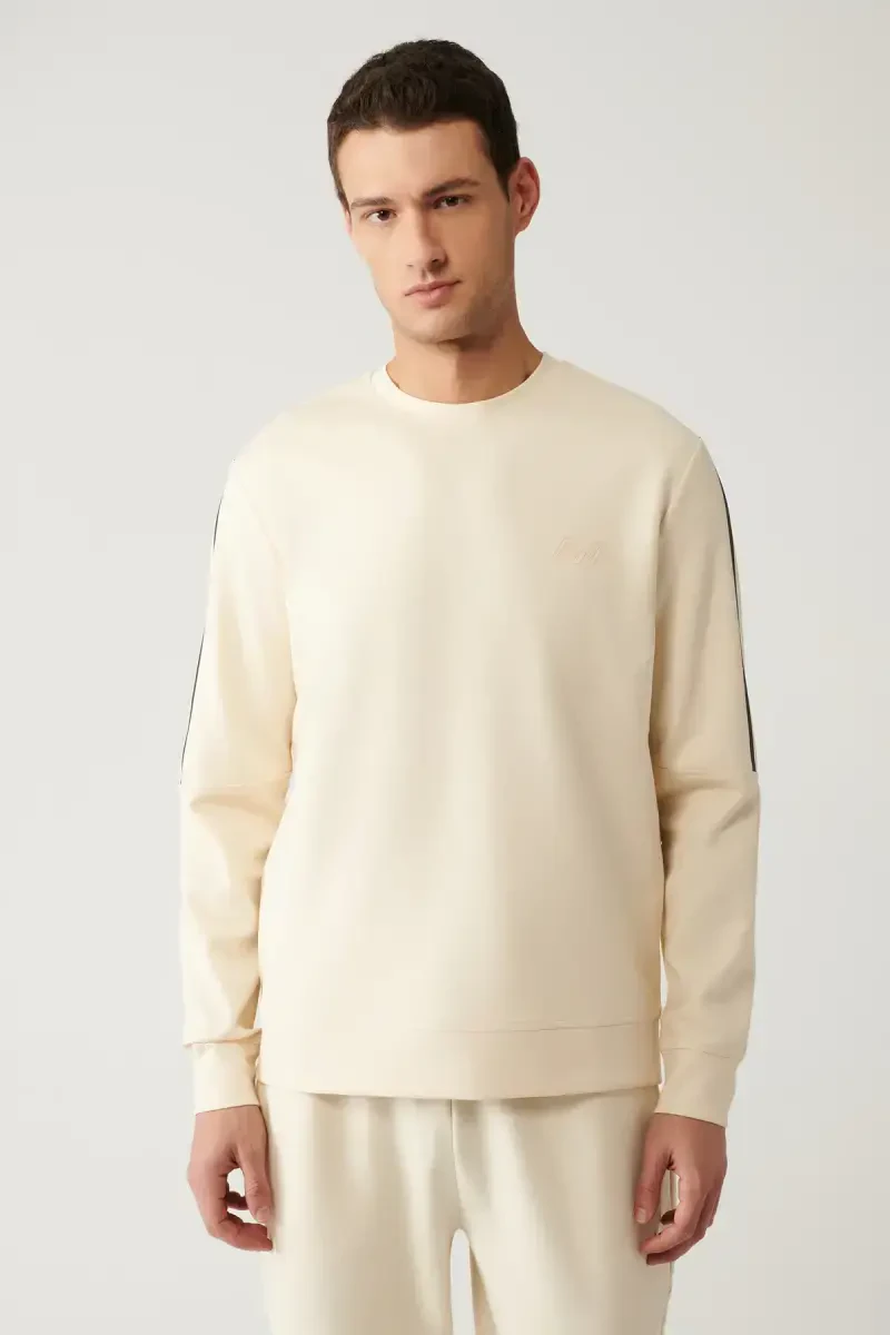 The Men's Beige Crew Neck Interlock Printed Regular Fit Sweatshirt A41y1203 is an ideal choice for adding a modern touch to your everyday style, combining style and comfort. Made from soft and breathable interlock fabric, the sweatshirt offers a comfortable wearing experience. The crew neck design adds a modern and stylish look, while the regular fit cut perfectly fits your body. With its unique print, this sweatshirt reflects your style, allowing you to achieve a stylish look in everyday life, sports or meetings with friends.