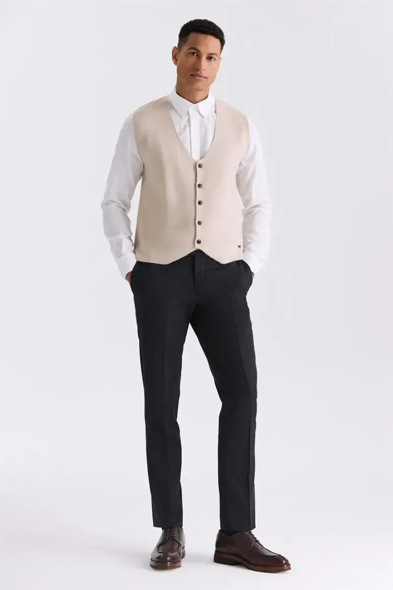 Step up your style and comfort game with the Beige Slim Fit Buttoned Tricot Vest! Made from a premium blend of 90% acrylic and 10% wool, this vest boasts a soft, luxurious feel and exceptional craftsmanship.Its slim fit silhouette flatters your figure, while the buttoned front closure provides a stylish and practical touch. It's designed to keep you cozy in chilly weather yet remains lightweight enough for unrestricted movement.Modelled in size 50 on a mannequin with a height of 187 cm, weight of 78 kg, and shoulder width of 120 cm. Select your perfect fit and elevate your wardrobe with this chic and comfortable piece.