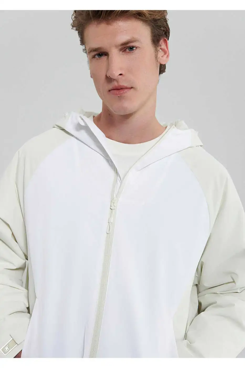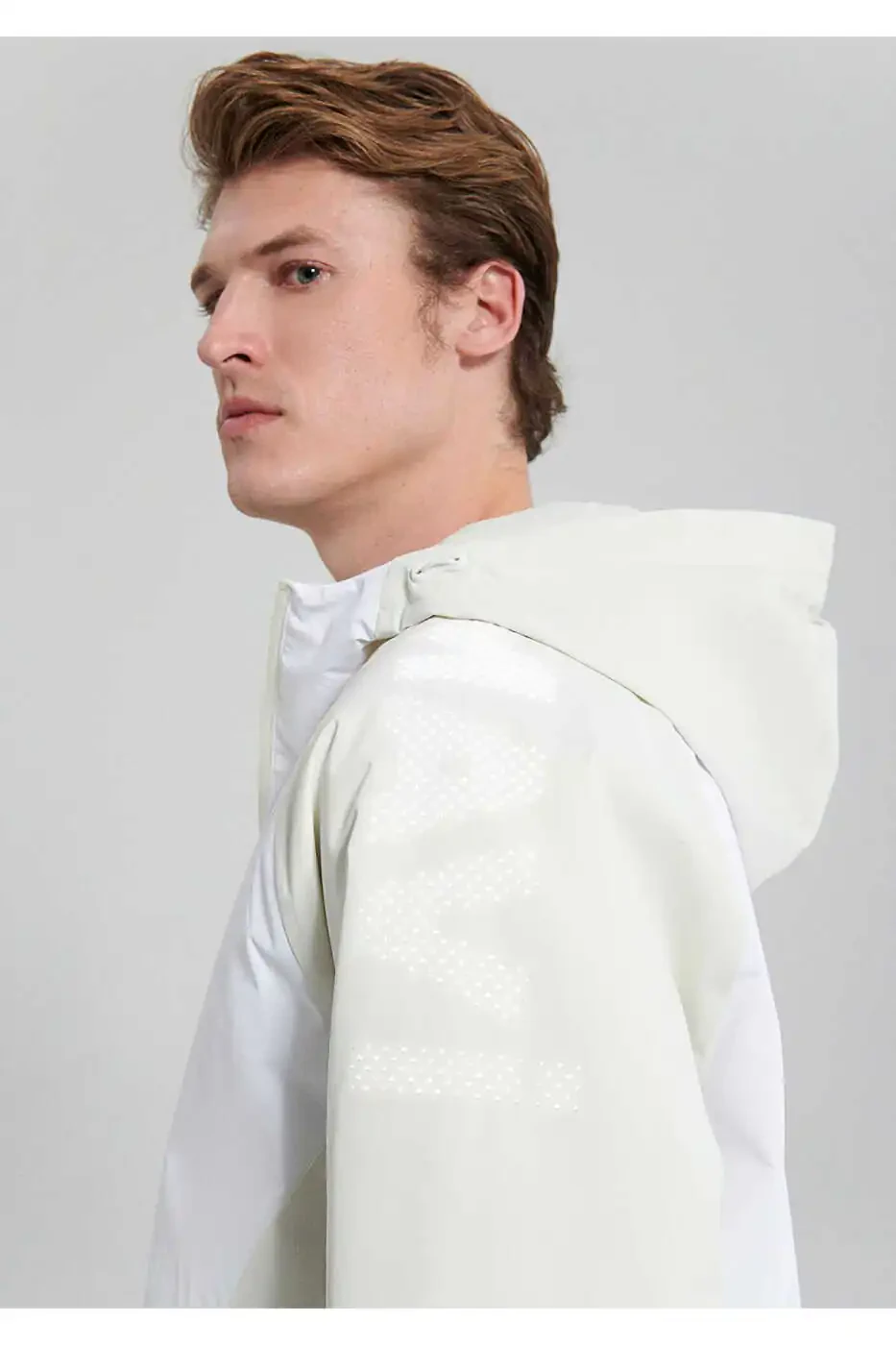 Блочная бежевая куртка - это стильный и удобный выбор для ваших повседневных нарядов. Ее водоотталкивающая ткань защитит вас в дождливые дни, а регулируемый капюшон со шнурком и регулируемые манжеты на липучках согреют вас в холодную погоду. Два боковых кармана и один внутренний карман позволяют надежно хранить ваши вещи, а светоотражающие детали сделают вас заметными во время ночных прогулок.