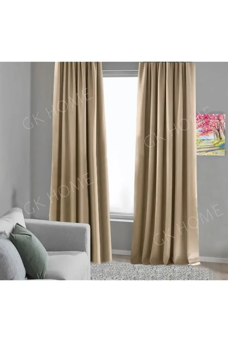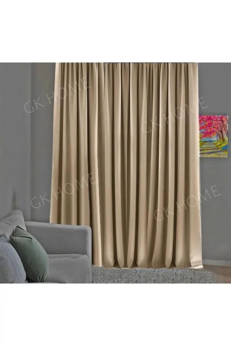 Bej Açık Vizon Blackout Perde , Karartma Işık Geçirmez Perde , Pilesiz Dikim (Tek Kanat Fon Perde)-Bej