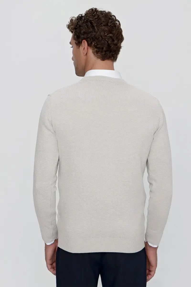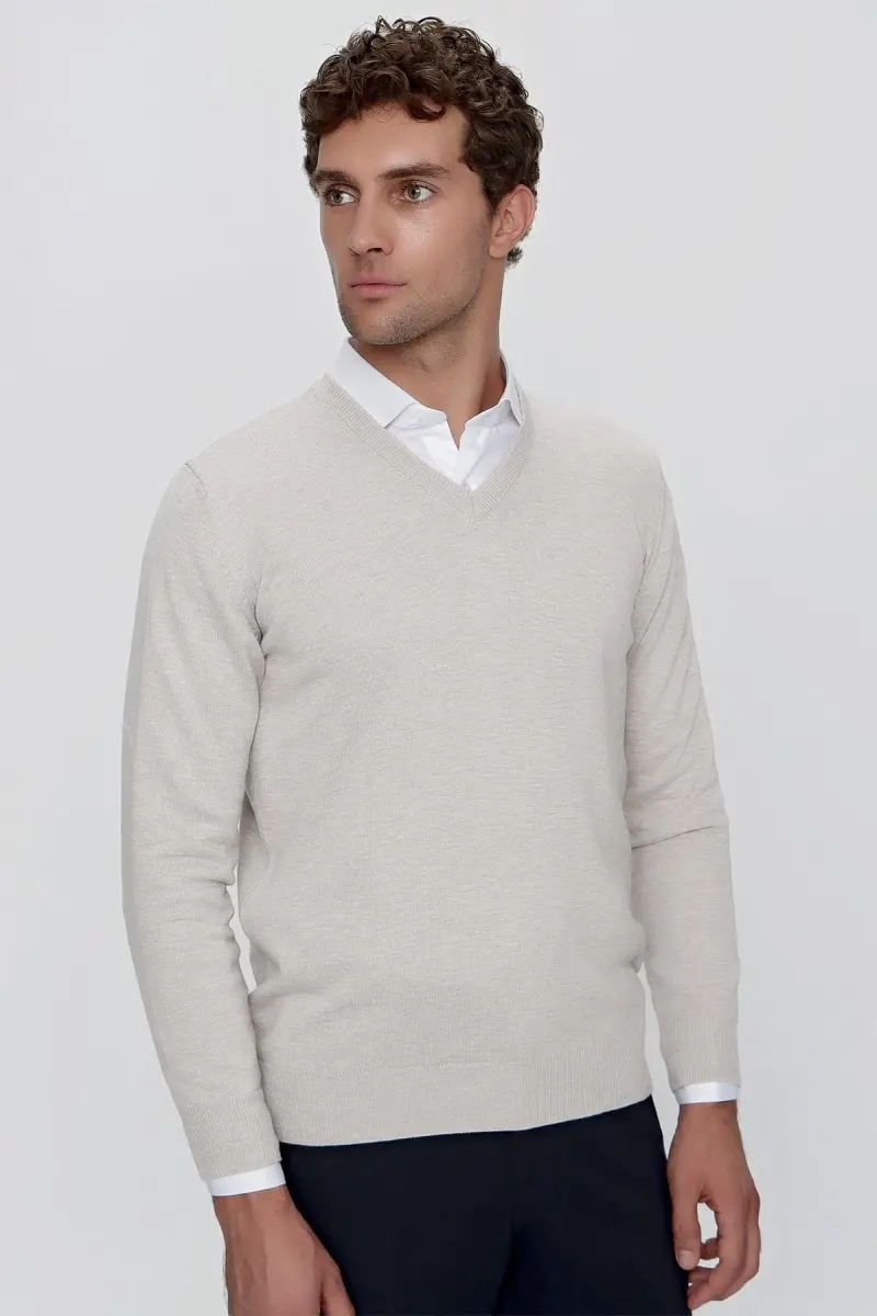 Bej kazak, triko kazak, V yaka kazak, rahat kesim kazak, basic kazak, pamuklu kazak, akrilik kazak, uzun kollu kazak, dinamik fit kazak, erkek kazak
