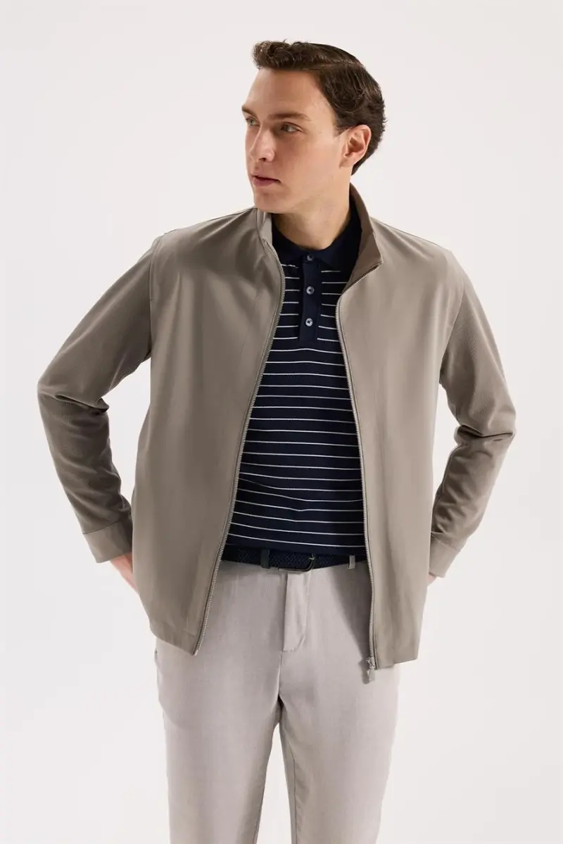 Bej Comfort Fit Dik Yaka Mevsimlik Spor Mont