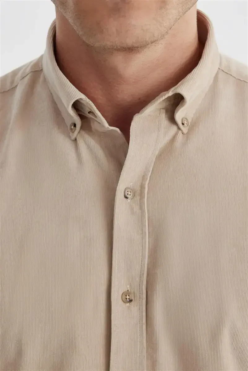 Kadife gömlek, %100 pamuklu gömlek, comfort fit gömlek, bej kadife gömlek