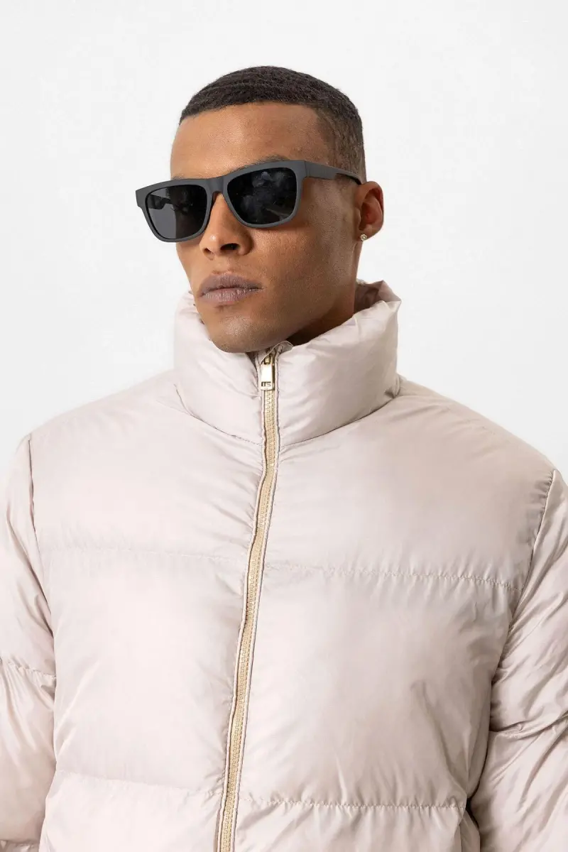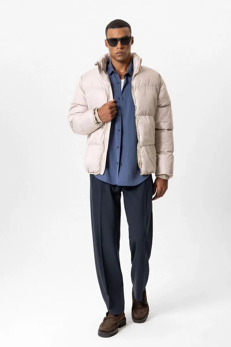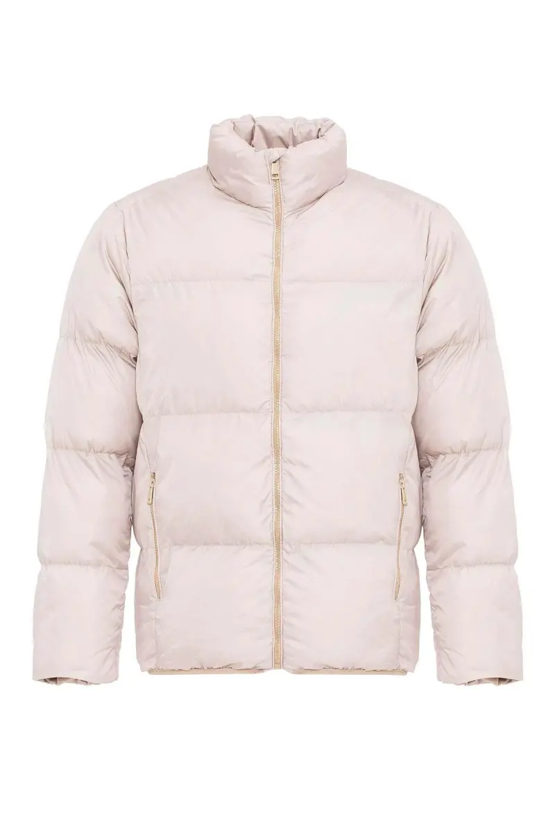 Bej Dik Yaka Kauçuk Şişme Mont-Bej