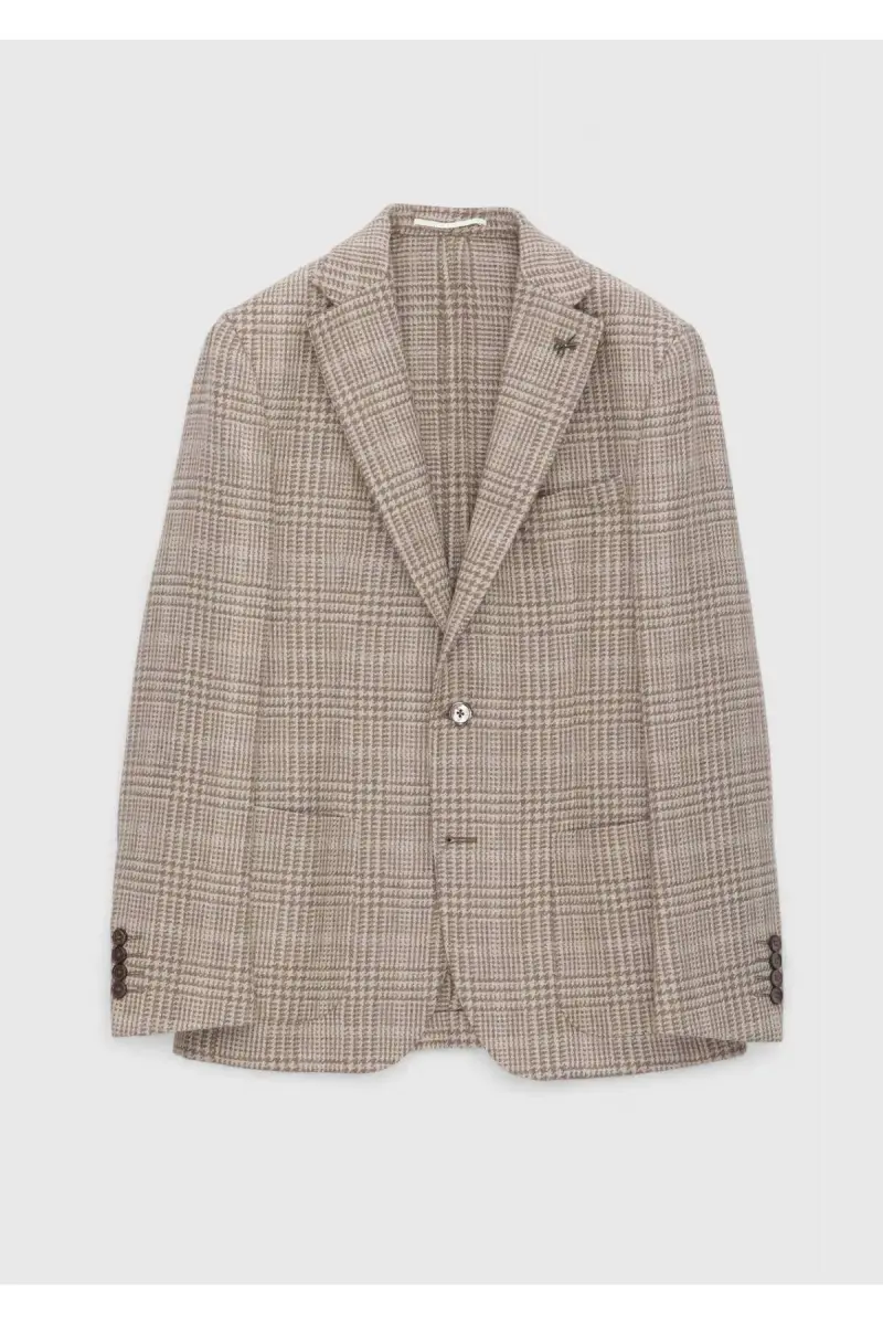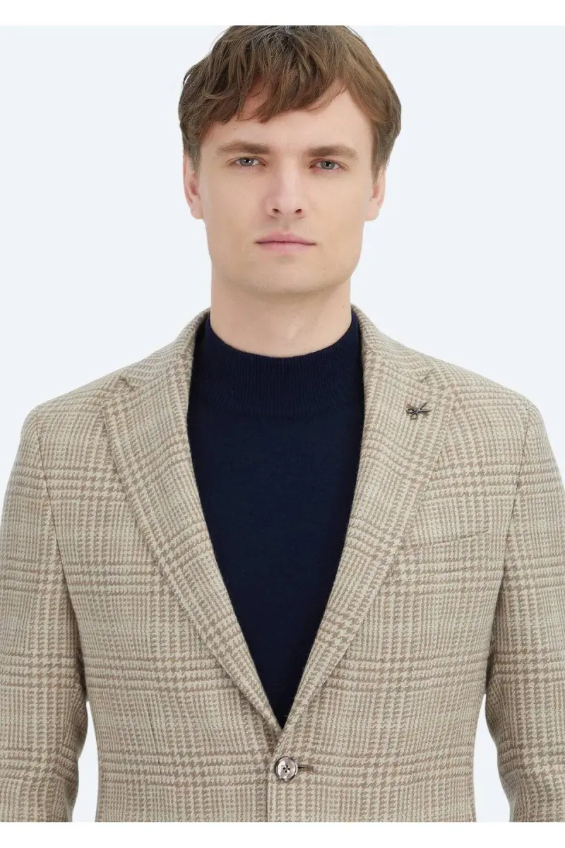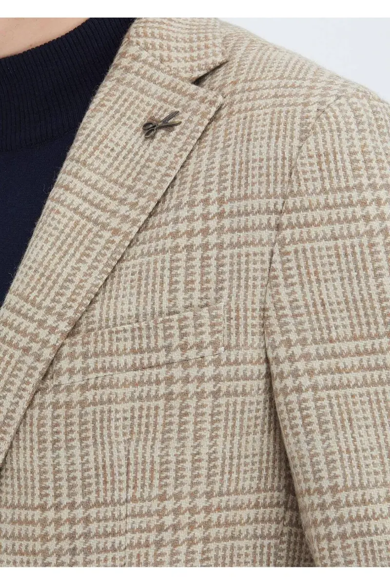 Bej Kareli Shirt Shoulder Slim Fit Yün Karışımlı Ceket-bej