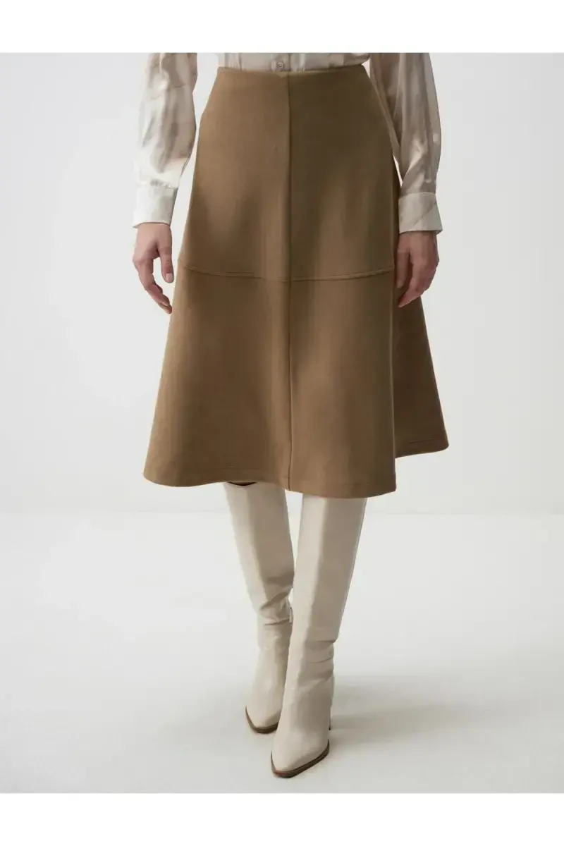 An ideal choice for days when you want to feel comfort without sacrificing your elegance: Beige Relaxed Fit Knit Velvet Midi Skirt! With its soft velvet texture and relaxed fit, this skirt, which offers comfort all day long, will be one of the indispensable pieces of your wardrobe. Its midi length and beige color can be easily combined with all kinds of tops and shoes, so you can achieve a stylish and elegant look in any environment. The knitted velvet fabric adds both a luxurious look and a warm touch to the skirt. It perfectly matches knitted sweaters and boots in autumn and winter, and basic t-shirts and sandals in spring and summer. Thanks to its elastic structure at the waist, it fits your body perfectly and provides freedom of movement. You can create an eye-catching style by combining this skirt with a stylish blouse and heels on special occasions, as well as comfortably use it with sneakers and t-shirts in daily life. With its timeless and stylish design that appeals to all ages and styles, the Beige Relaxed Fit Knit Velvet Midi Skirt will keep its place in your wardrobe for many years. Moreover, it's with you with Jimmy Key quality and Trendyol assurance! Don't miss this opportunity and order now!